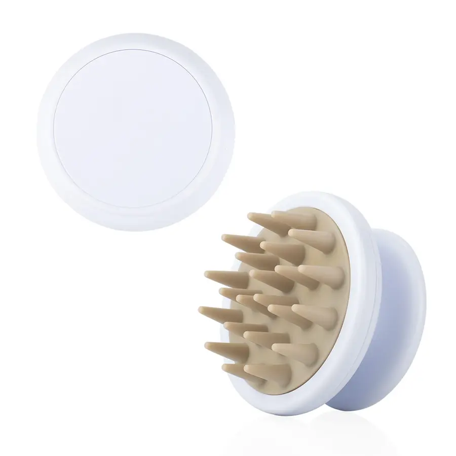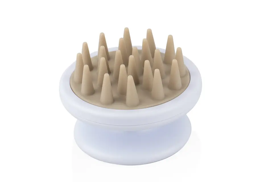Cepillo masajeador para cuero cabelludo, fabricado en plástico con púas de silicona que brindan suavidad y comodidad. Cuenta con un mango ergonómico para un agarre seguro, ideal para aplicar shampoo, estimular la circulación y relajar durante el lavado. Resistente, fácil de limpiar y diseñado para uso diario.