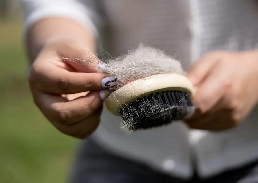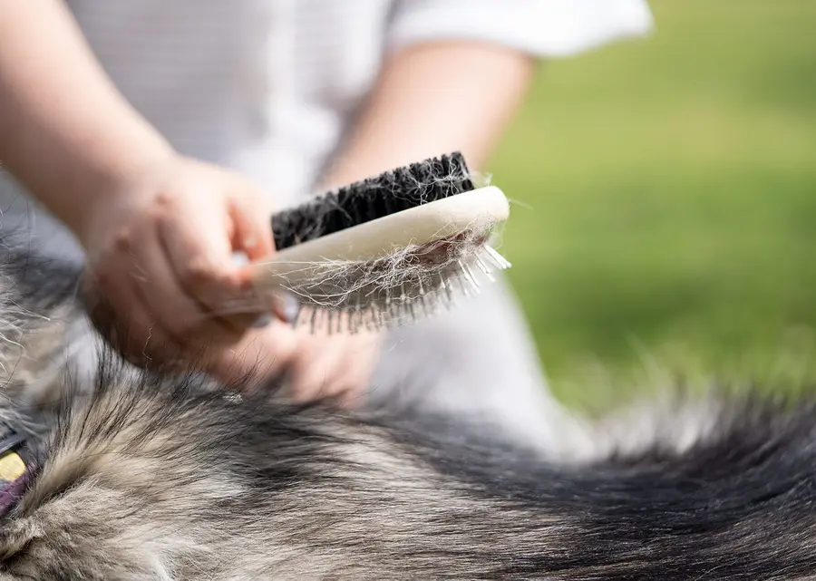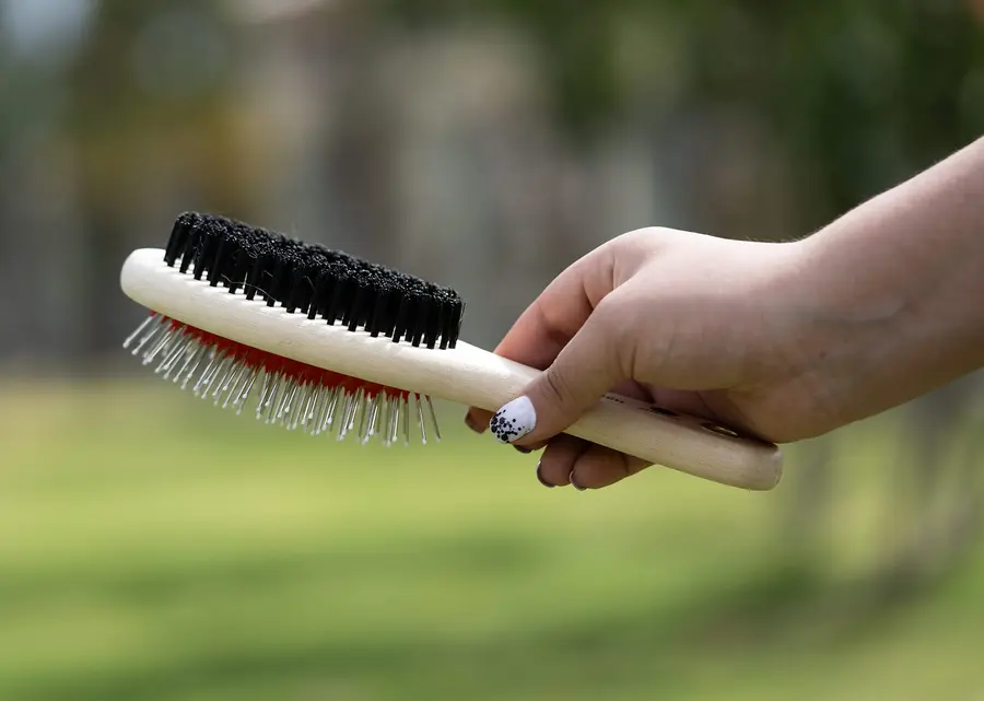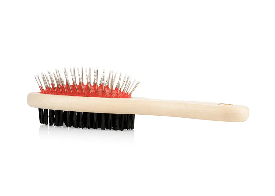 Cepillo 2 en 1 para estética de mascotas, perfecto para cuidar el pelaje de los peluditos.
