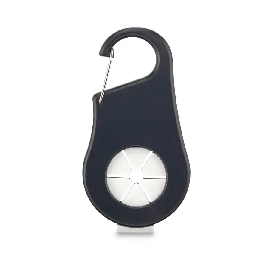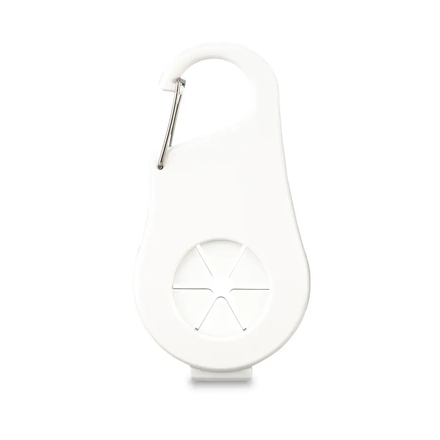 Colgador de botellas plástico con carabinero decorativo. También sirve para cargar toallas.