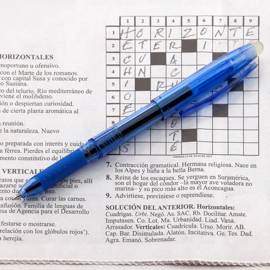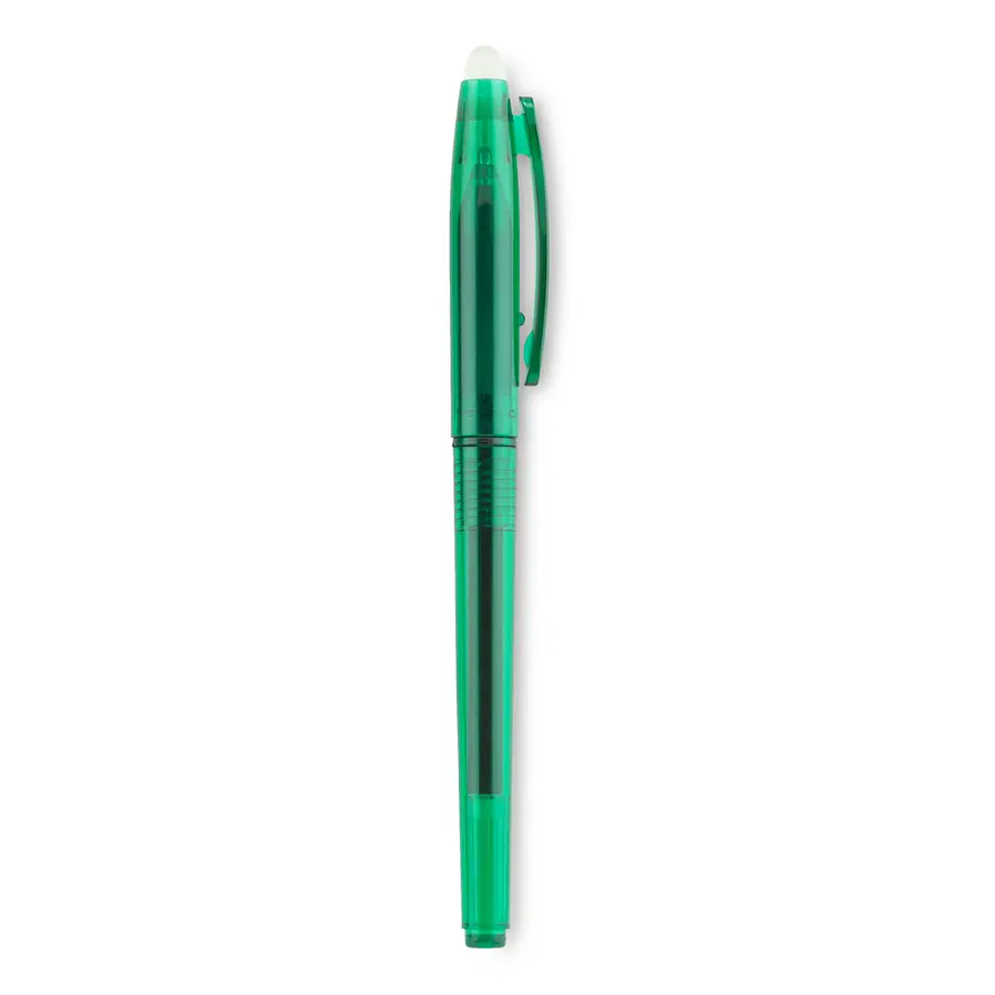 Bolígrafo plástico con tinta borrable. Con borrador.