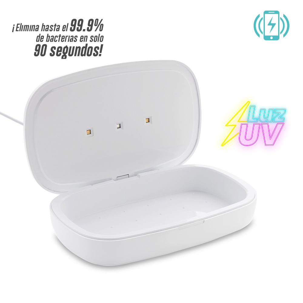 Es un producto que consume poca energía y ambientalmente amigable. La luz UV LED solo funciona con el dispositivo completamente cerrado. La función de carga inalámbrica se realiza colocando el smartphone sobre la tapa del esterilizador.