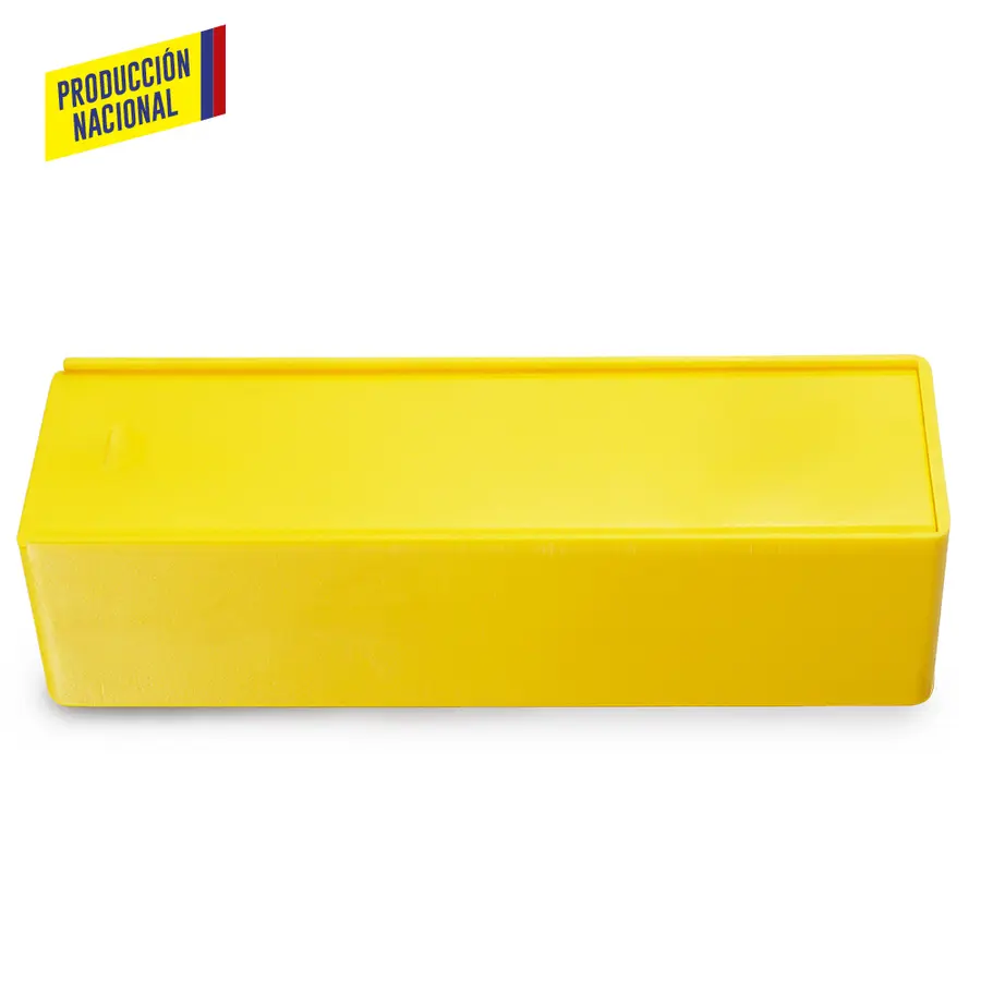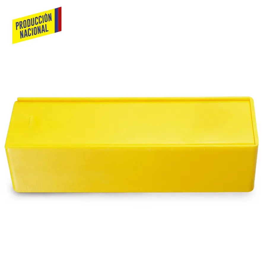 Plástico con tapa corrediza. Para múltiples usos.