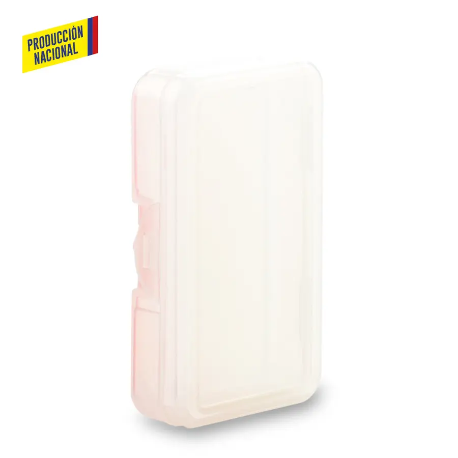 Estuche plástico multifuncional, permite organizar y contener múltiples objetos.