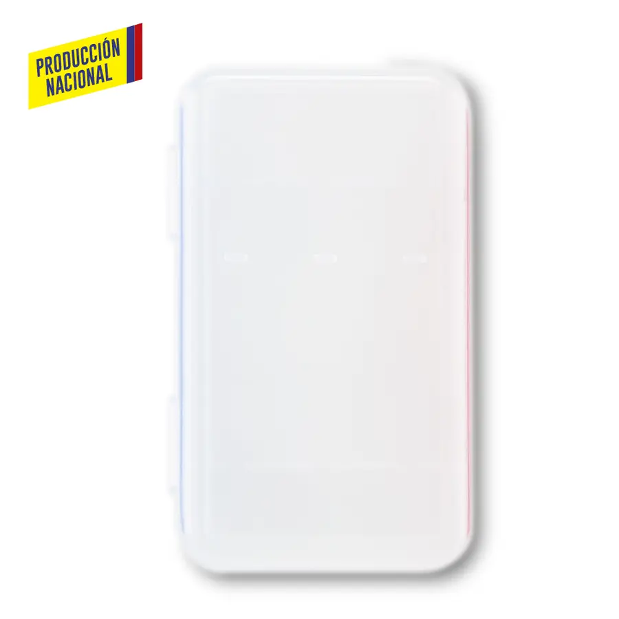 En plástico. Estuche para 3 resaltadores. Los colores de los resaltadores son opcionales.