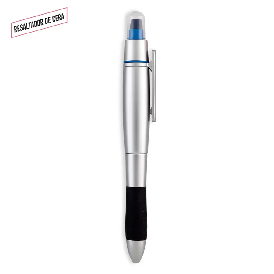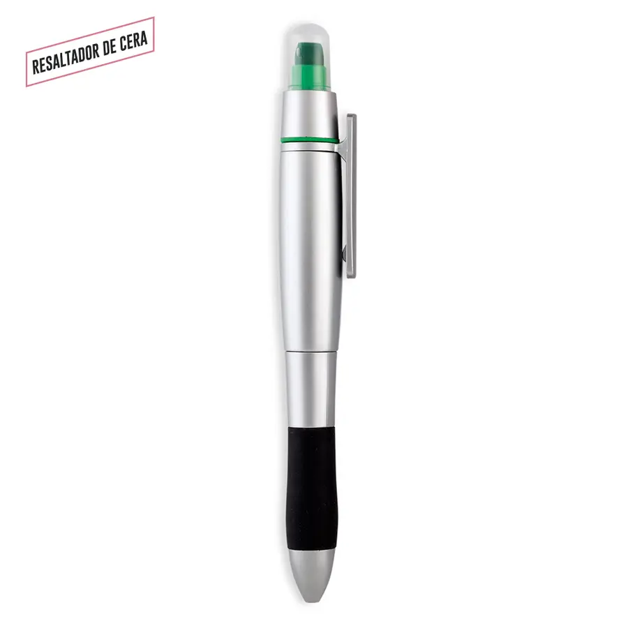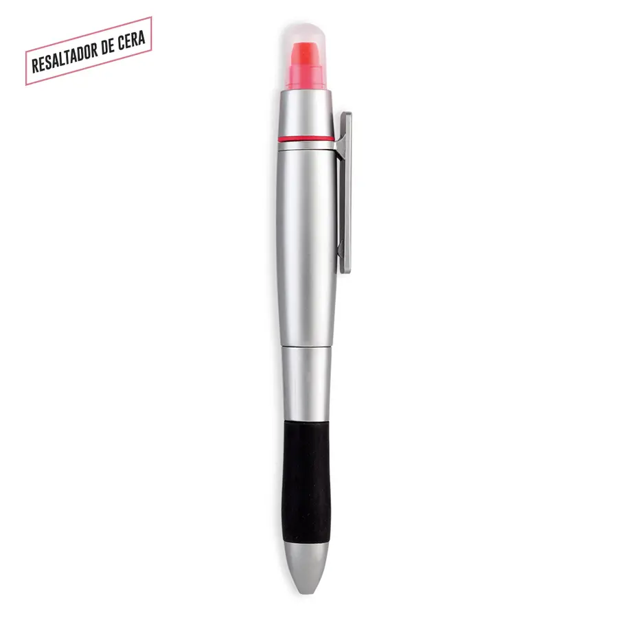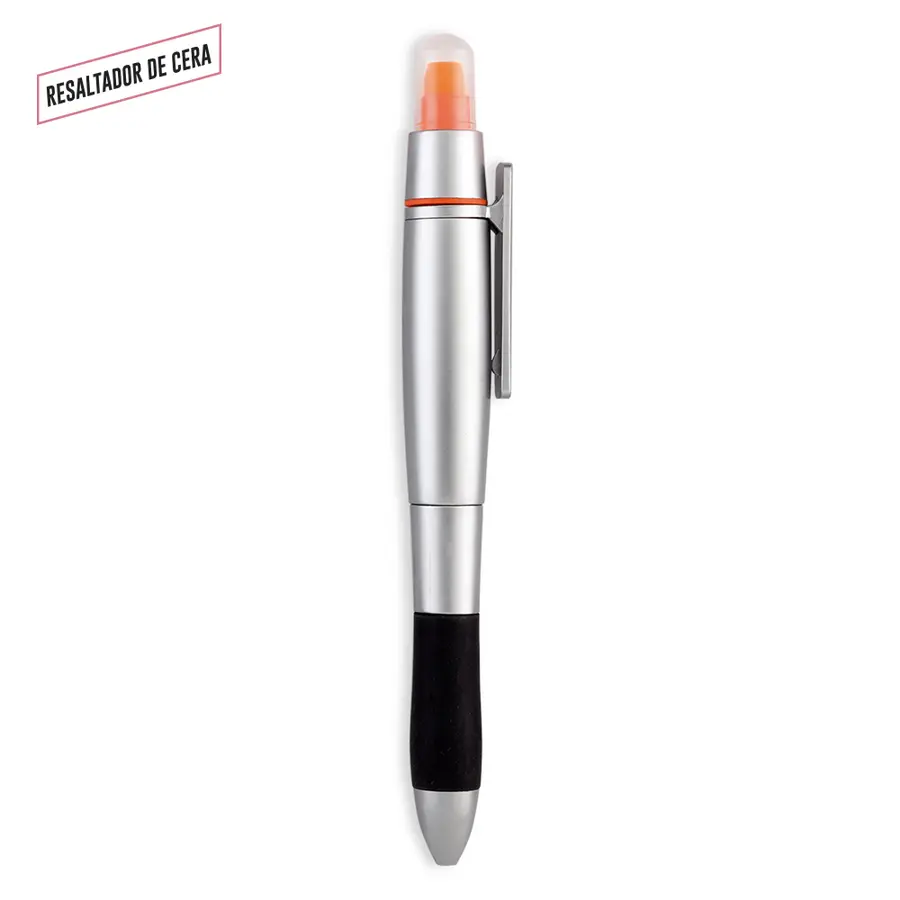 Bolígrafo plástico con resaltador de cera. No se seca.
