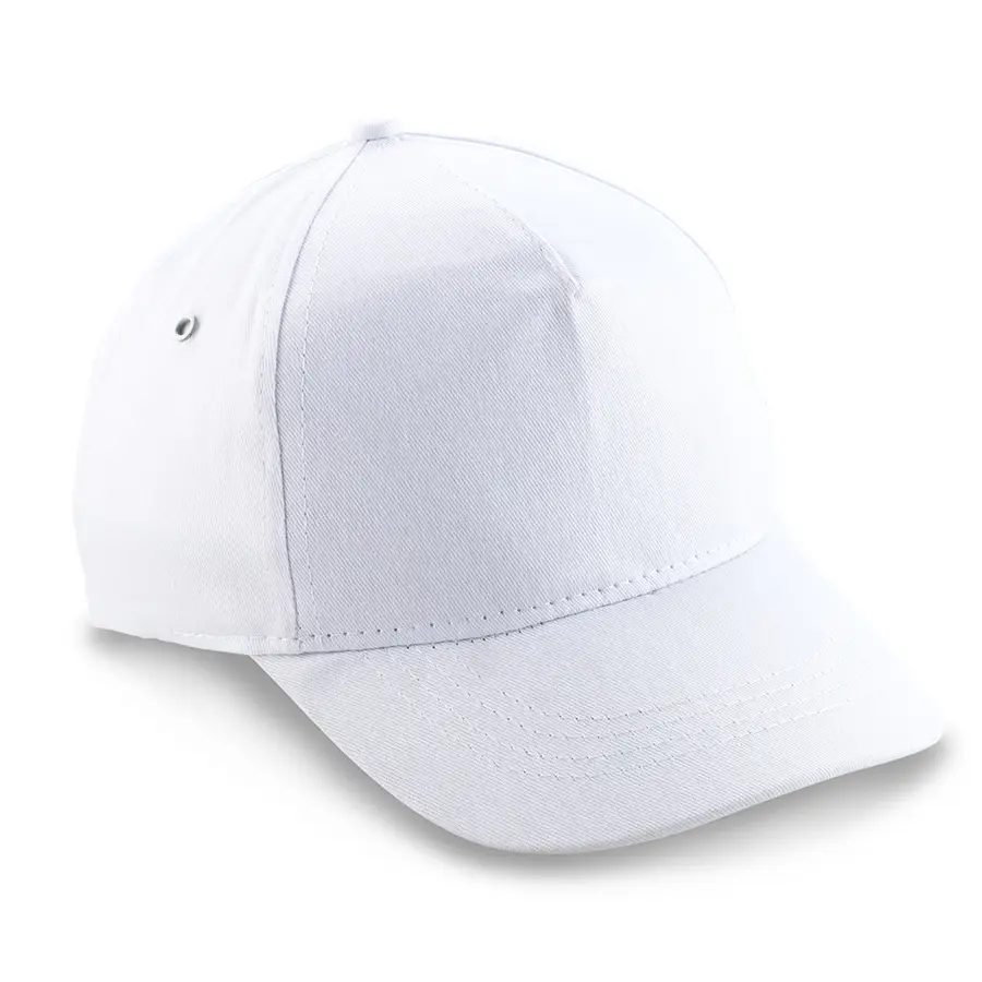 5 paneles en dril liviano, visera indeformable, frente fusionado, encintado interior, tafilete sencillo, cierre plástico.