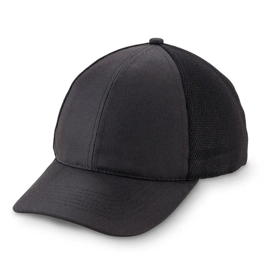 Gorra combinada con malla poliéster y tela poliéster, 6 paneles, con cierre en velcro.