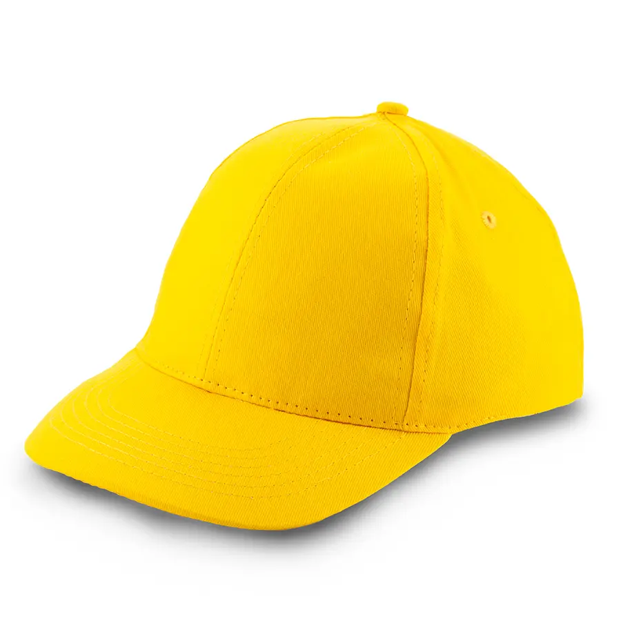 Gorra en poliéster de alta calidad, de 6 páneles (4 de malla en parte posterior y 2 en poliéster en el frente). Con botón forrado y visera indeformable. Con cierre plástico.
