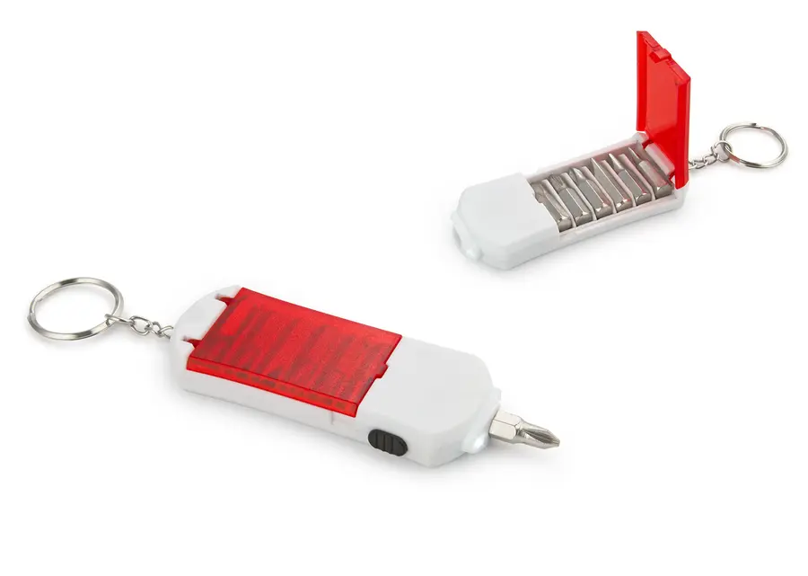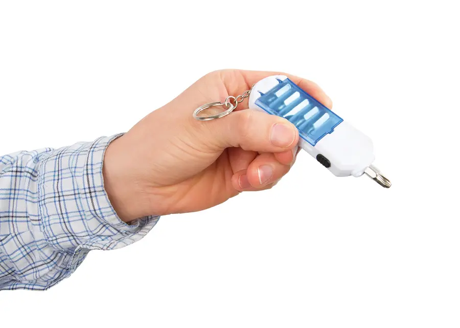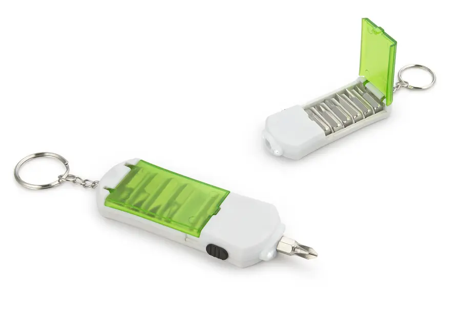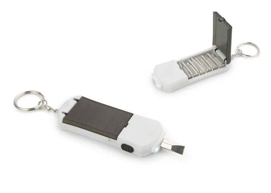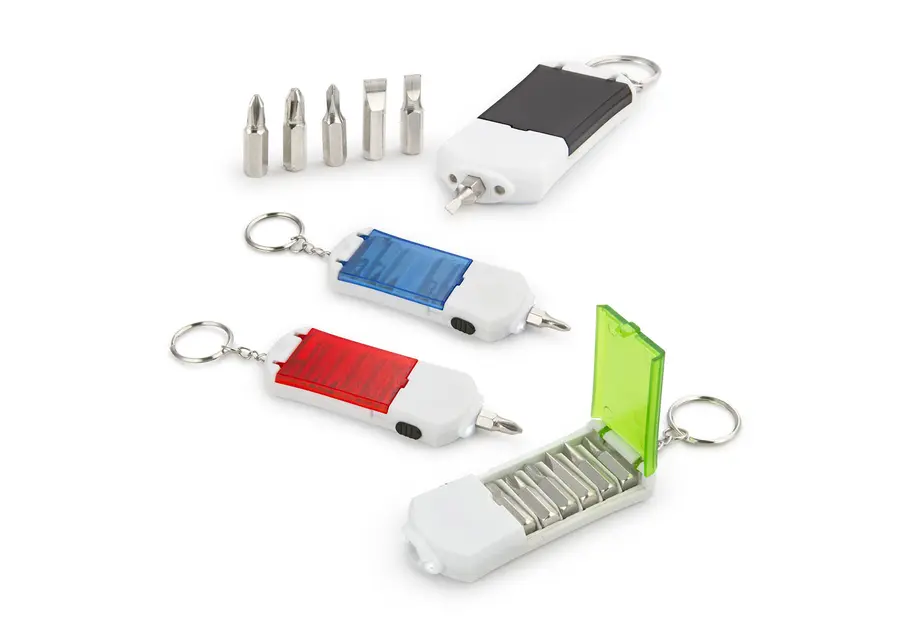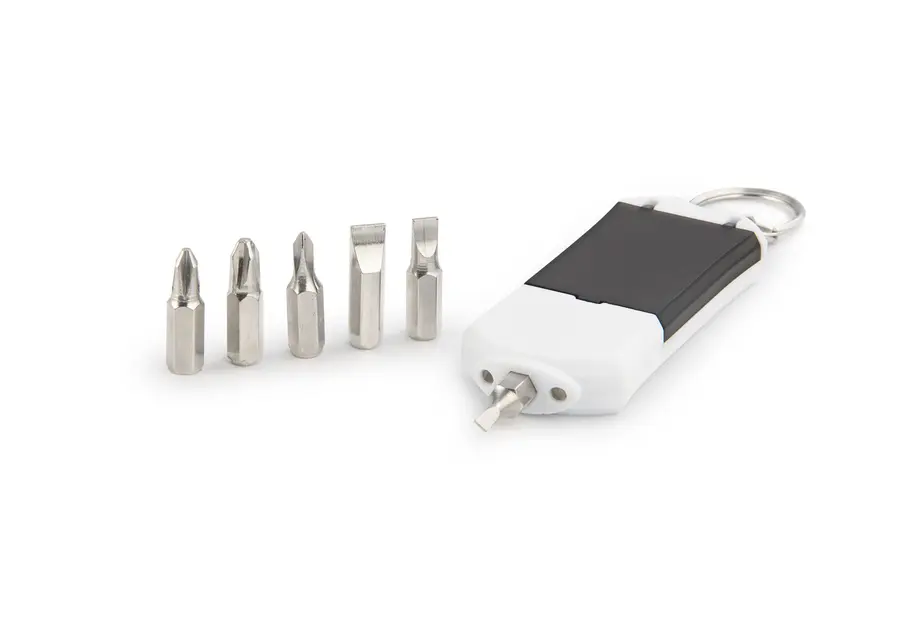 Llavero con linterna LUZ LED y 6 puntas de destornillador: 3 tipo phillips y 3 tipo pala.