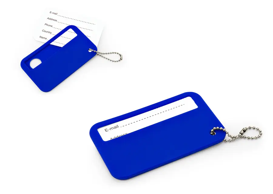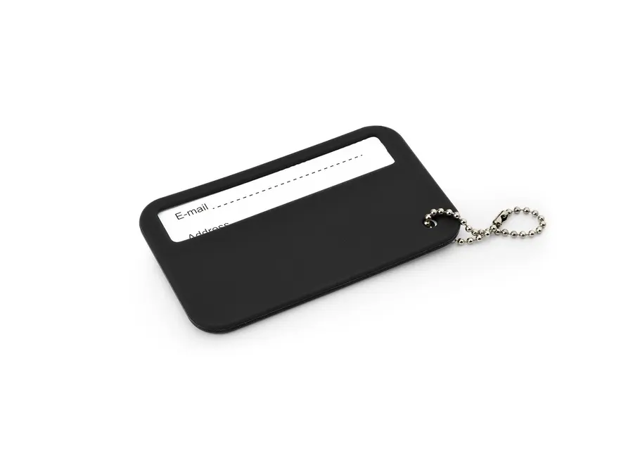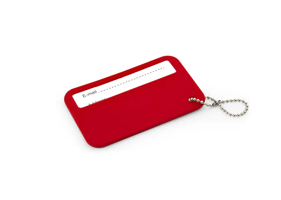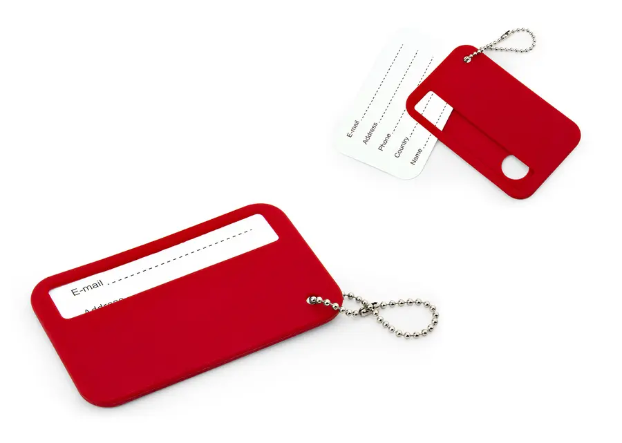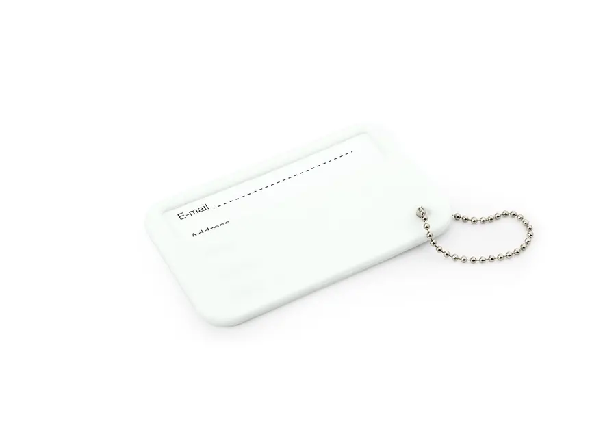 Identificador en silicona para maletas. Incluye cordón sujetador.
