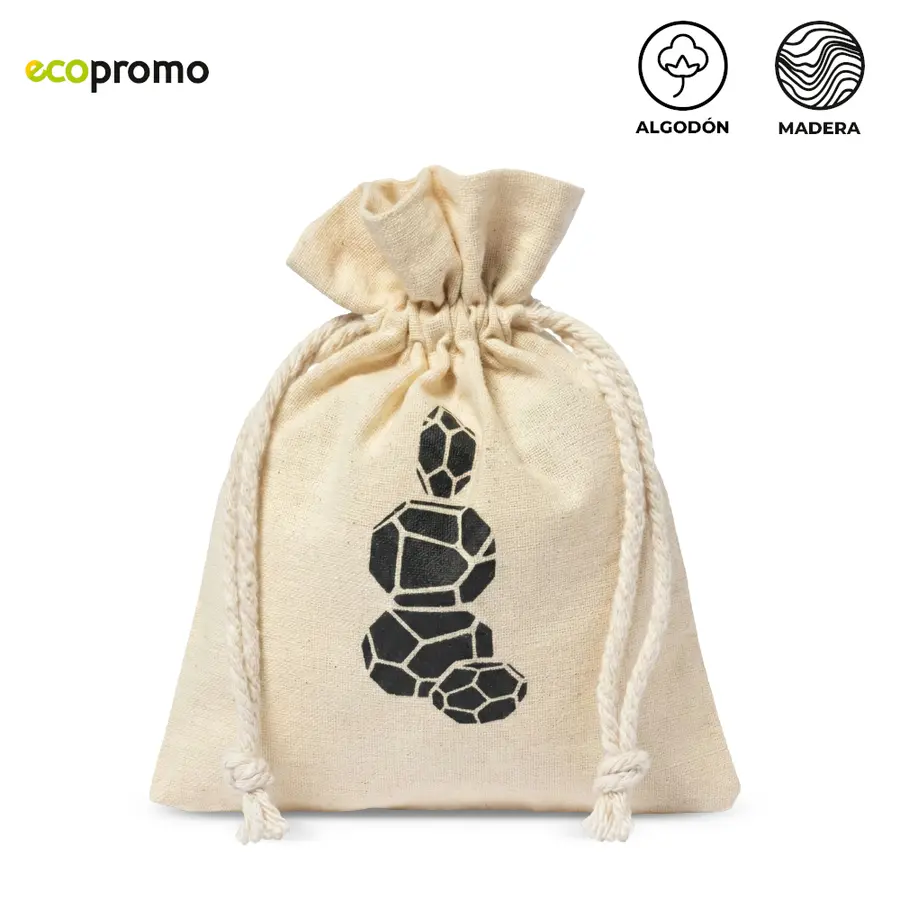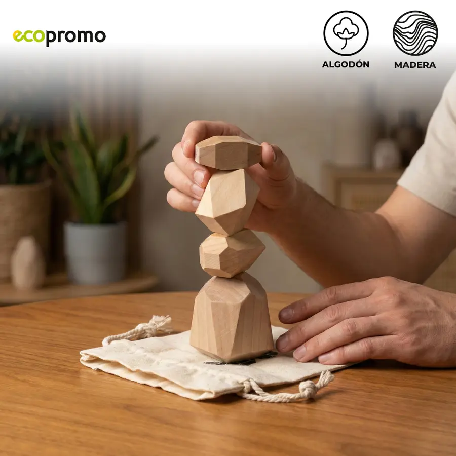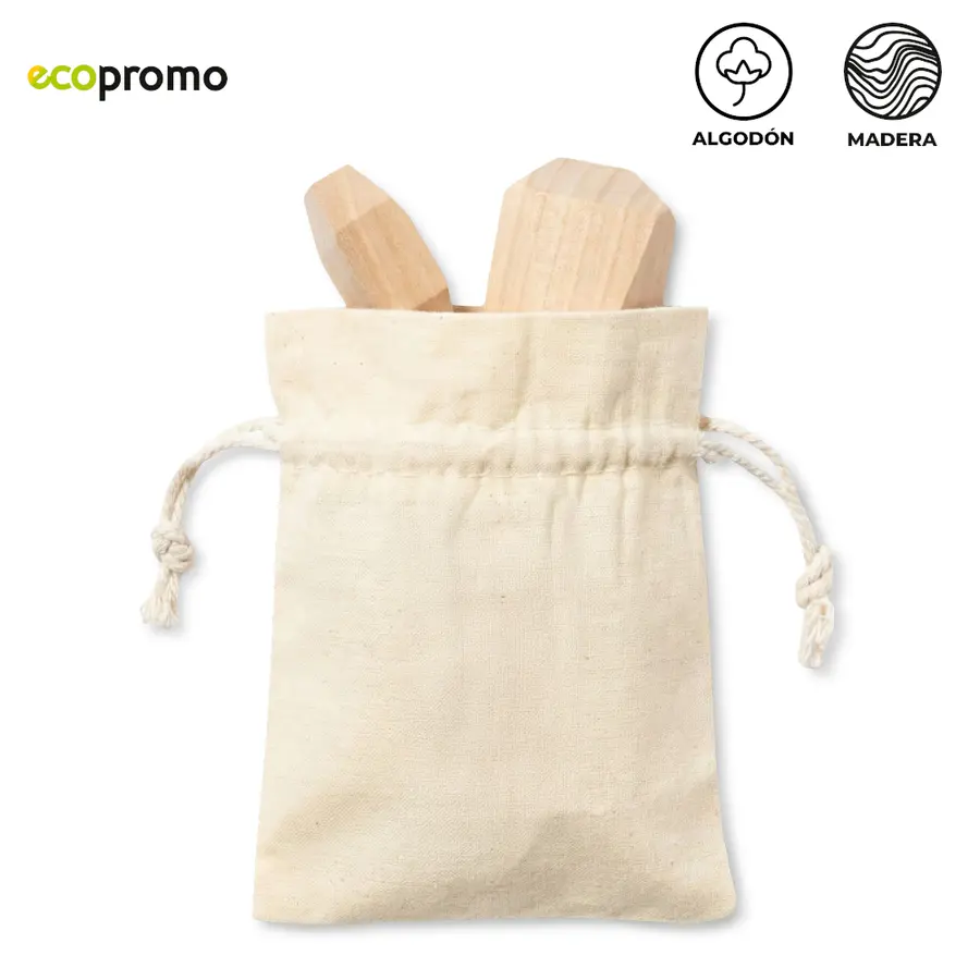 Juego de 4 piezas en madera natural, diseñado para desarrollar habilidades. Con bolsa en algodón.