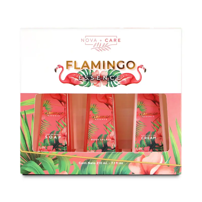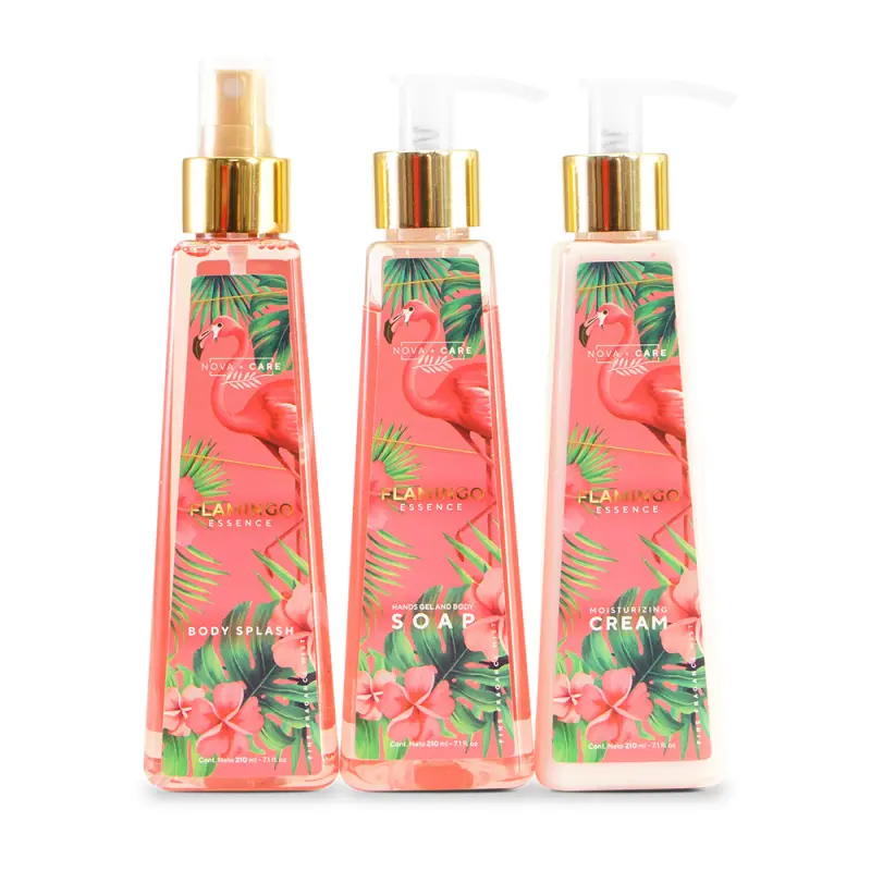 El kit Flamingo Essence es la combinacio?n ideal que brindara frescura y bienestar cada di?a a tu piel, con el Body Splash, experimenta una fragancia suave y duradera, el Moisturizing Cream, agrega un toque de suavidad y proteccio?n a tu piel y el Hands Gel and Body Soap, con ingredientes especiales acondiciona tus manos y cuerpo, despertaran con sus notas frutales una sensacio?n irresistible.