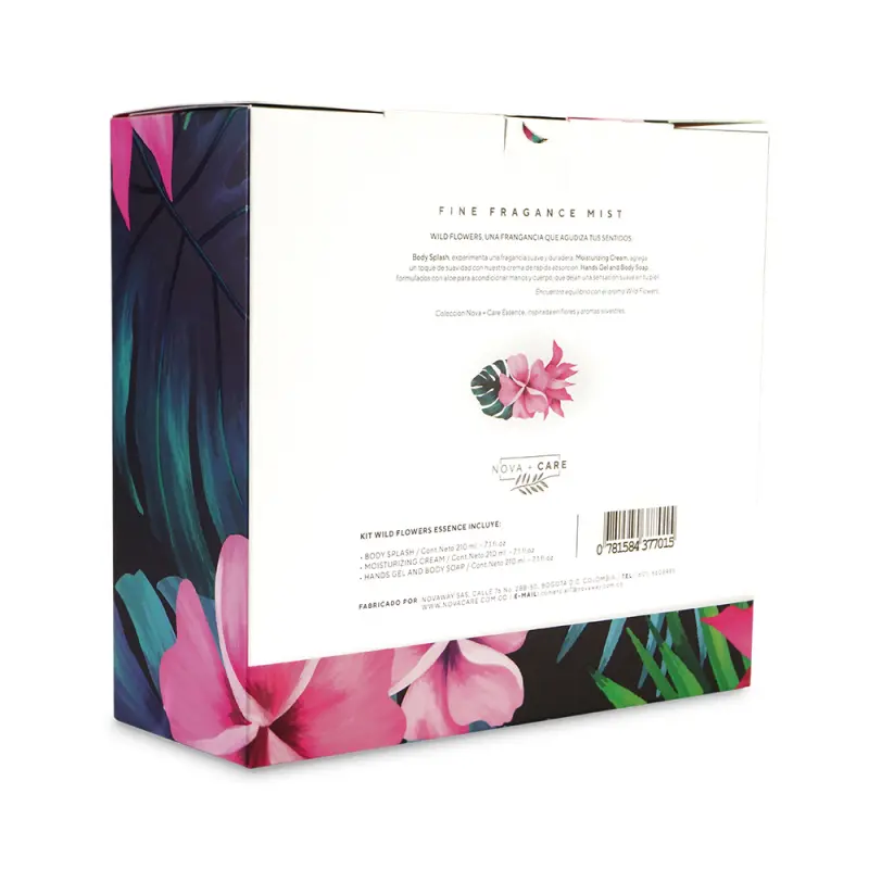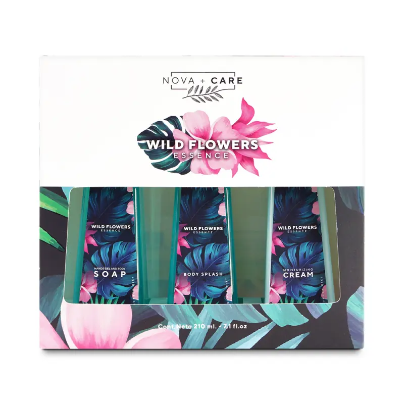 El kit Wild Flowers Essence es la combinacio?n ideal que brindara frescura y bienestar cada di?a a tu piel, con el Body Splash, experimenta una fragancia suave y duradera, el Moisturizing Cream, agrega un toque de suavidad y proteccio?n a tu piel y el Hands Gel and Body Soap, con ingredientes especiales acondiciona tus manos y cuerpo, despertaran con sus notas florales salvajes una sensacio?n irresistible.