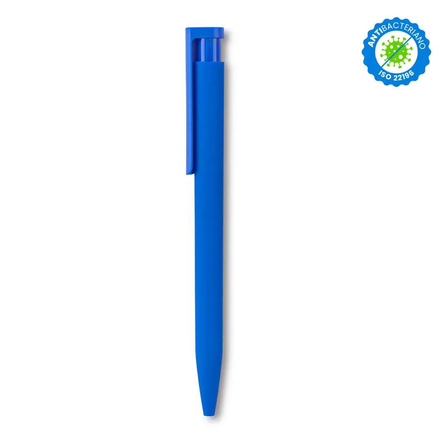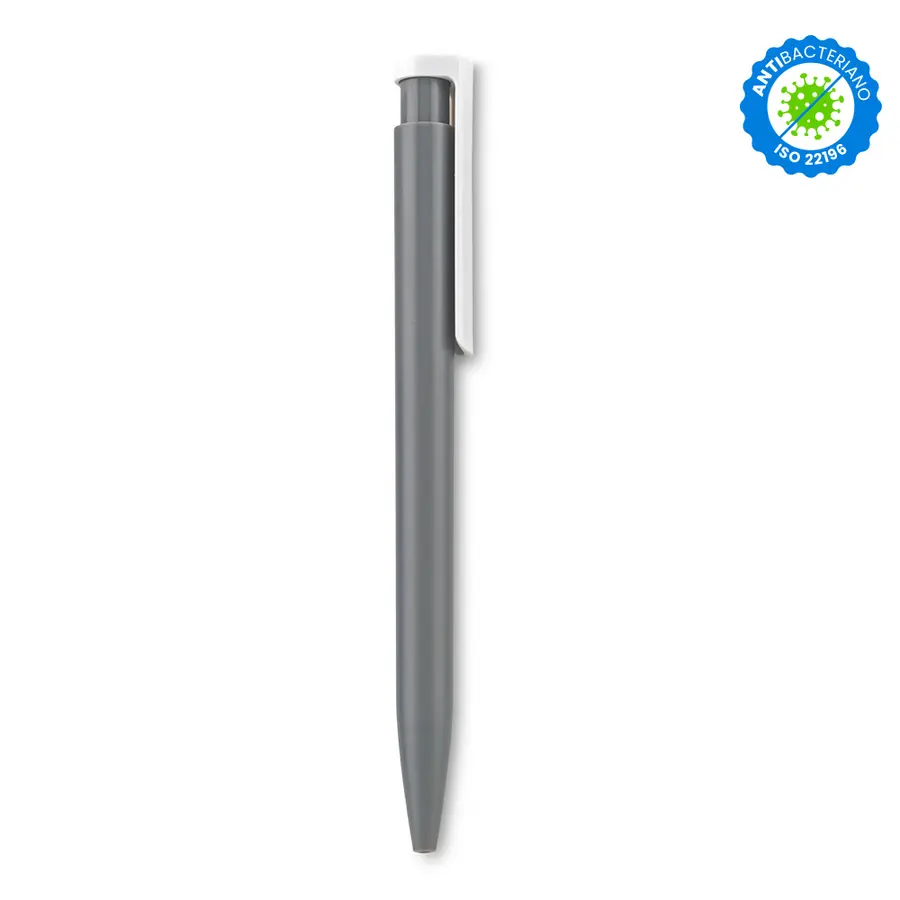 Bolígrafo plástico fabricado con un aditivo antibacteriano que inhibe y previene el crecimiento bacteriano sobre el cuerpo del bolígrafo gracias a la tecnología nano silver, un tratamiento especial realizado con iones de plata. Las bacterias al contacto con el bolígrafo se repelen y reducen hasta en 99%. Trabaja las 24 horas al día y permanece libre de microbios y bacterias. Mecanismo Push.