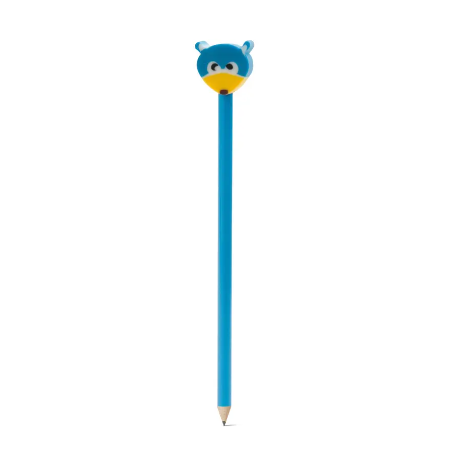 Lápiz afilado de madera que incluye una goma de borrar en diferentes diseños con forma de animalitos.