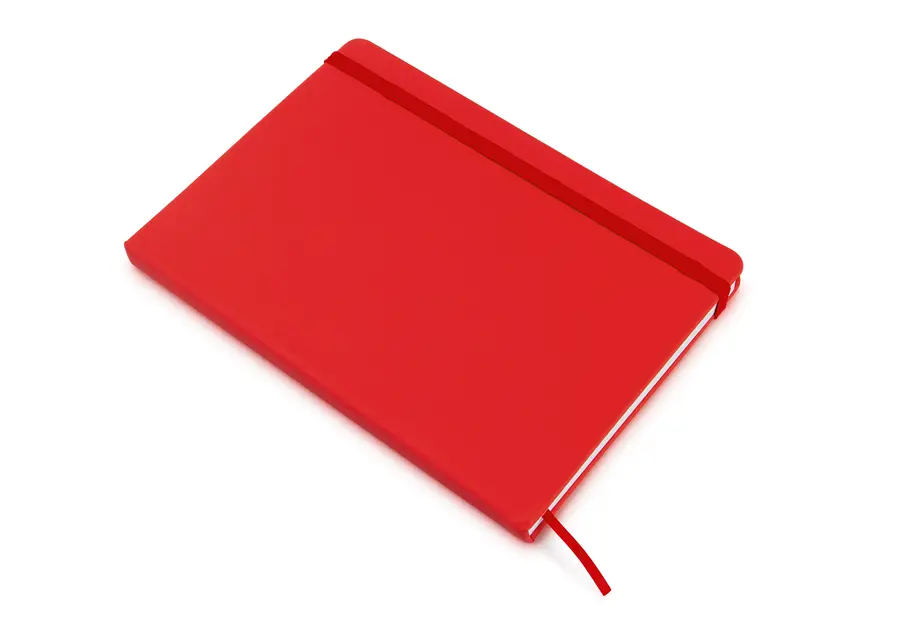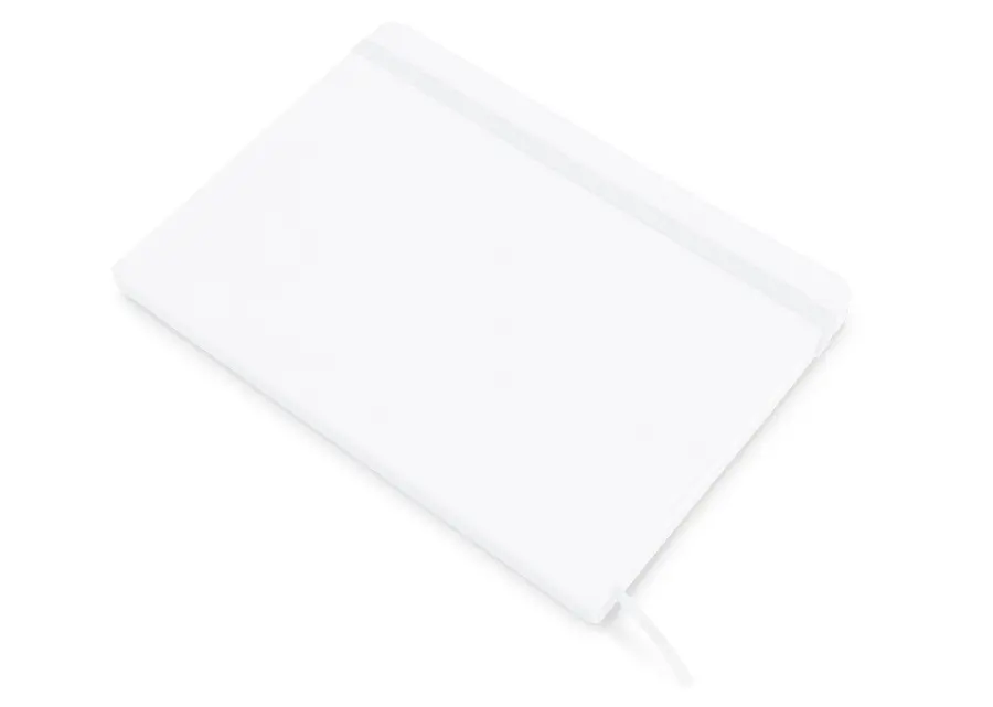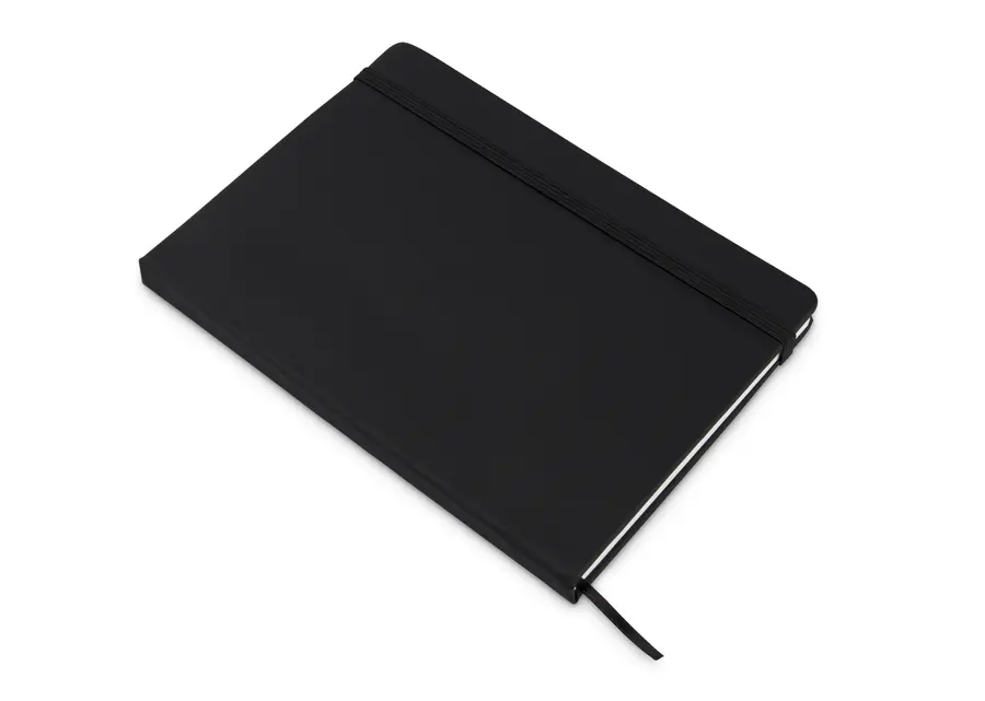 Libreta con cubierta forrada en imitación cuero. Con banda elástica de cierre. Cinta marcadora. 80 hojas rayadas. Tamaño aproximado de la hoja: A5. La libreta de color Natural viene con cubierta en cartón reciclado.