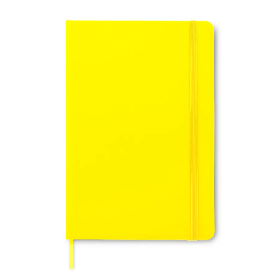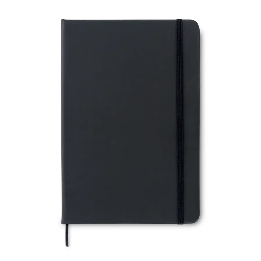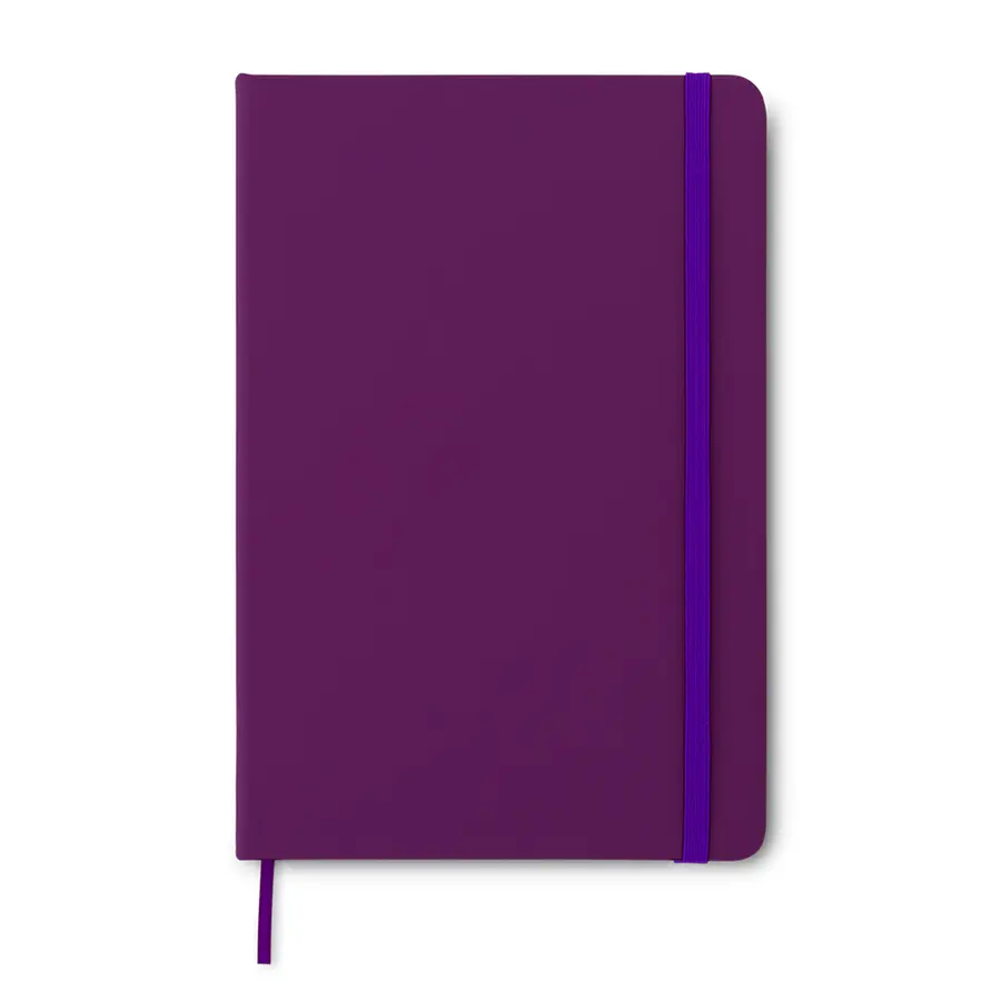 Libreta en poliuretano con cierre elástico. No incluye bolígrafo. 80 hojas.