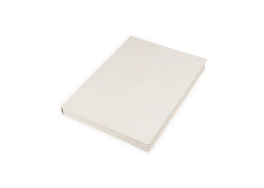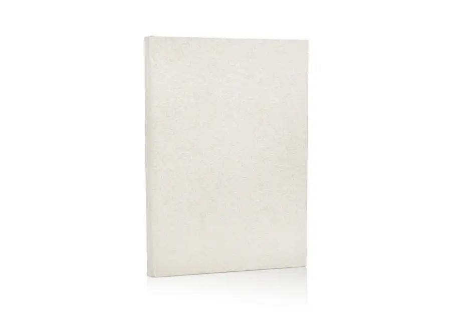 Libreta con cubierta dura y hojas elaboradas en material recuperado de cajas Tetra Pak. 100 hojas rayadas de 70 g/m². Tamaño aproximado de la hoja: A5.