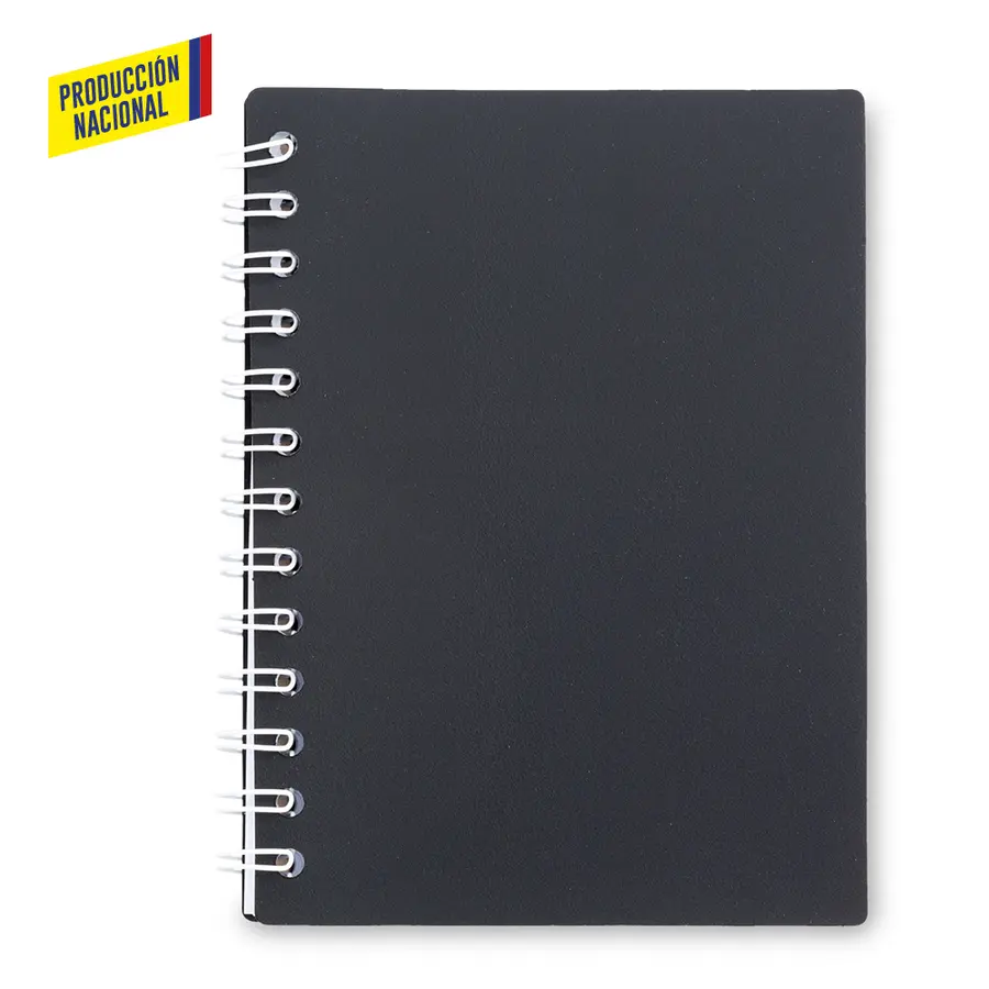 Libreta de 80 hojas con rayas, cubierta en polipropileno. No incluye bolígrafo.