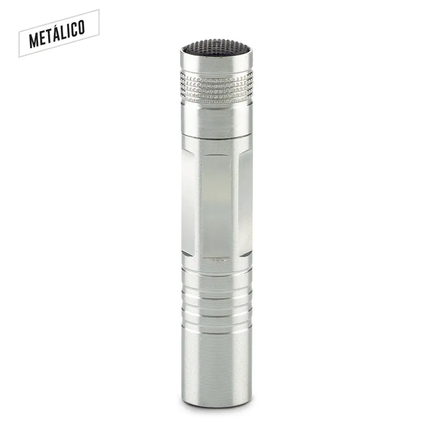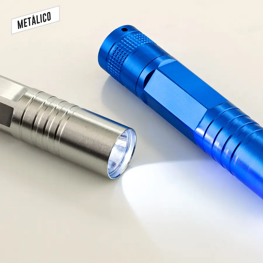 Linterna metálica de 1 LED. 1 pila AA (No incluida). Empaque caja Individual.