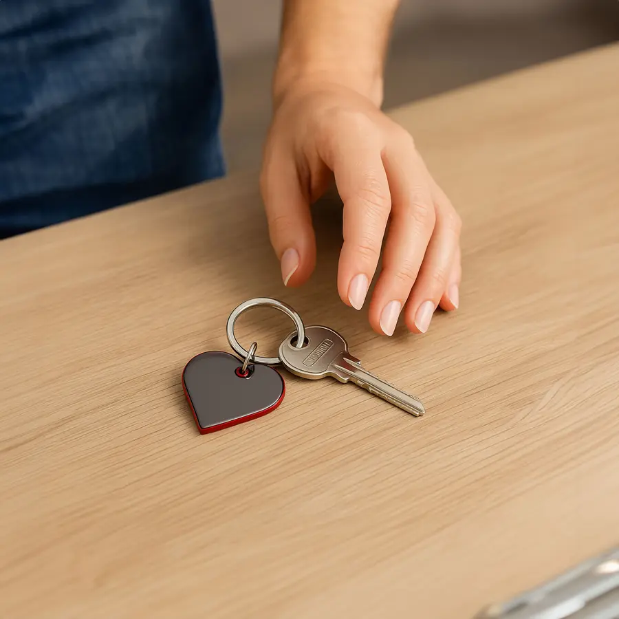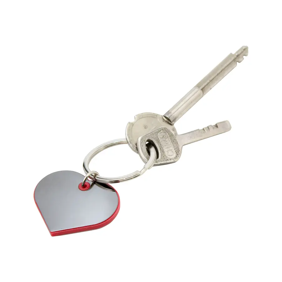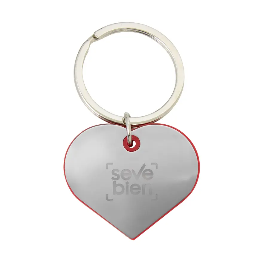 Pequeño, elegante y significativo.Llavero con forma de corazón. Estructura plástica de color con apliques de acero color gris gun de cada lado. Acabado brillante.Medidas: 4,3 x 3,5 x 0,35 cm. LLavero de Ø 3,5 cm x 0,2 cm. Materiales: Hierro, ABS y Acero.