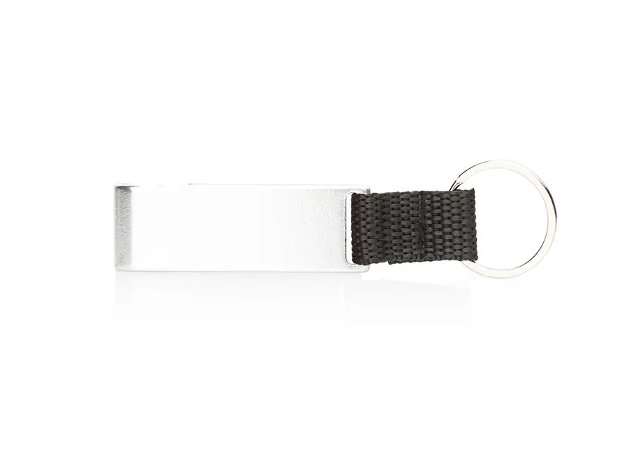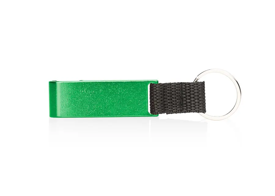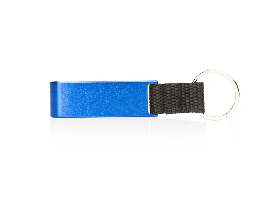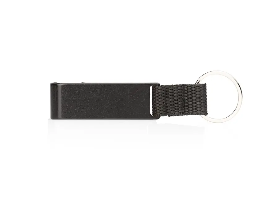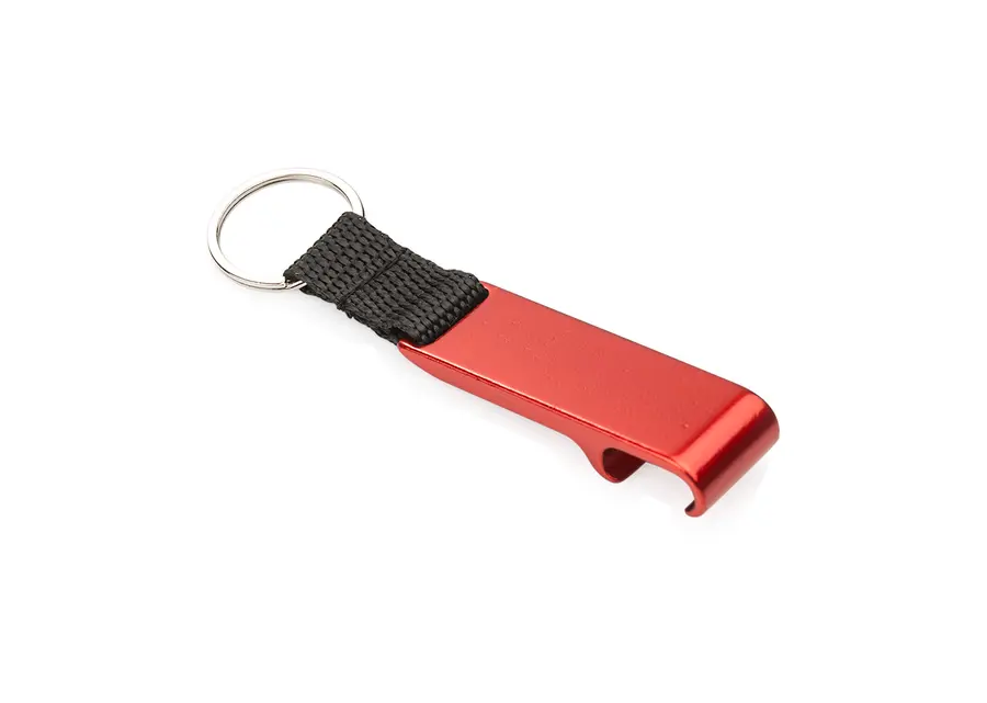 Llavero destapador de aluminio reciclado su diseño tiene la función de ser soporte para el celular.