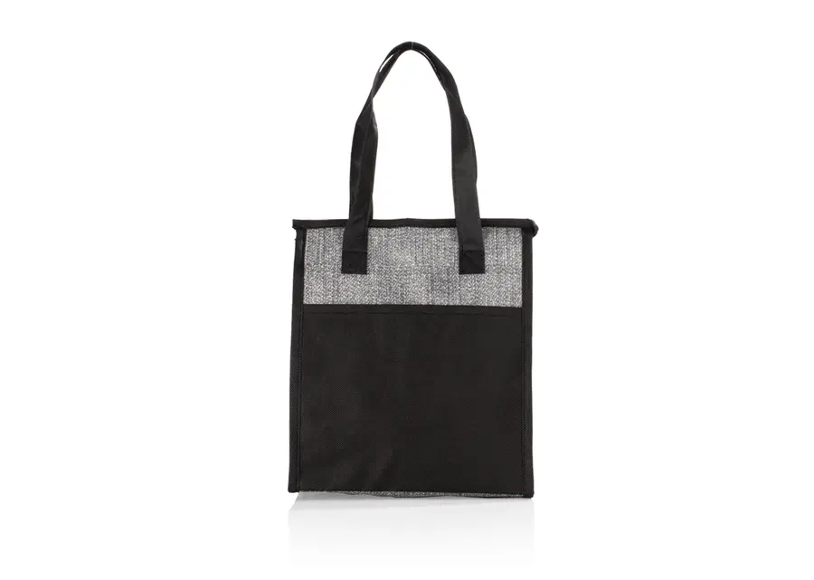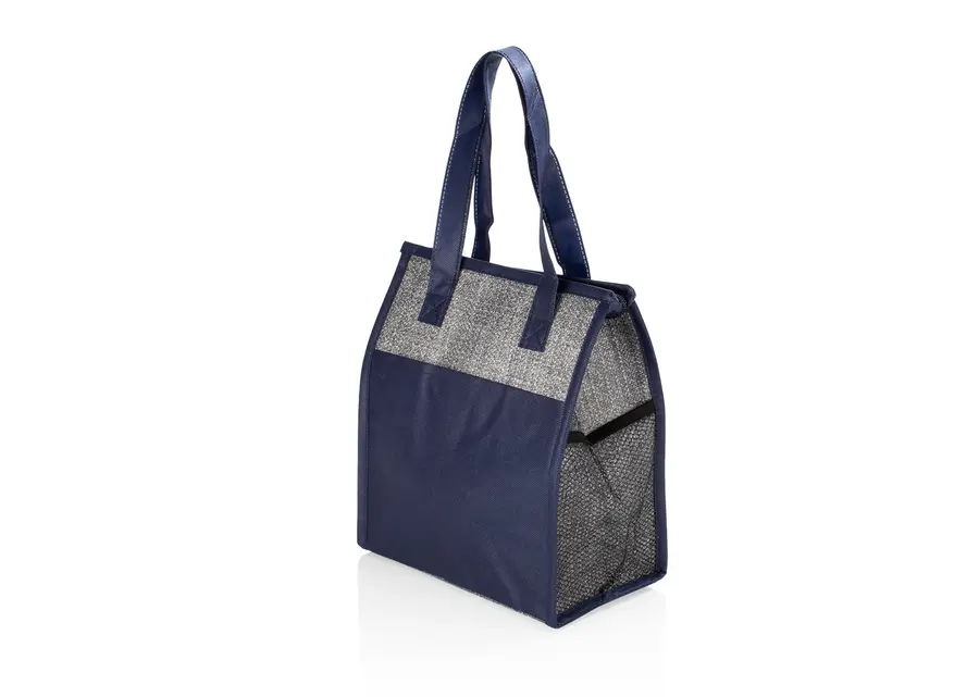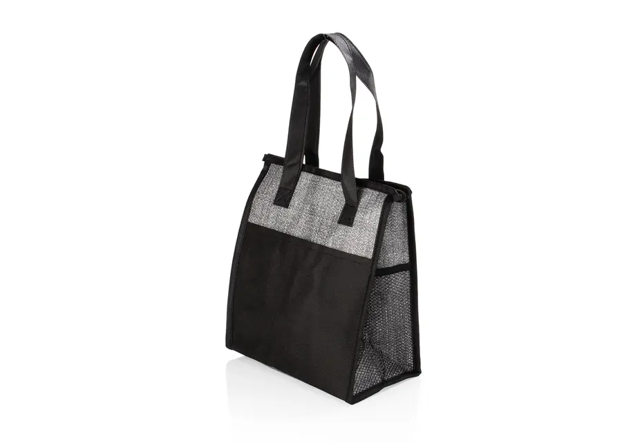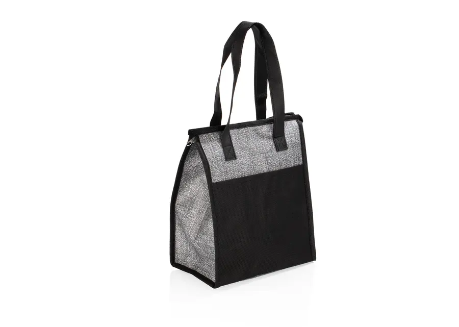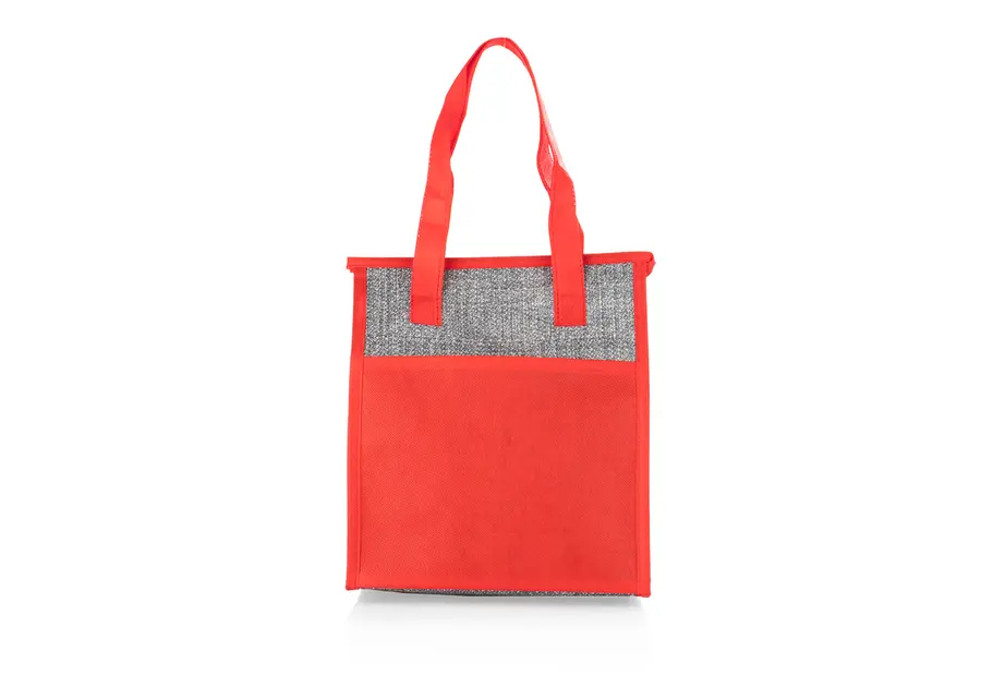 Lonchera térmica con cremallera, agarraderas y revestimiento interior en aluminio para conservar la temperatura por un mayor tiempo.