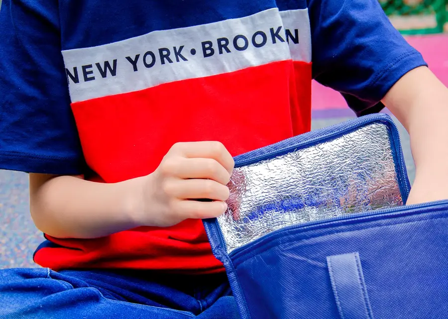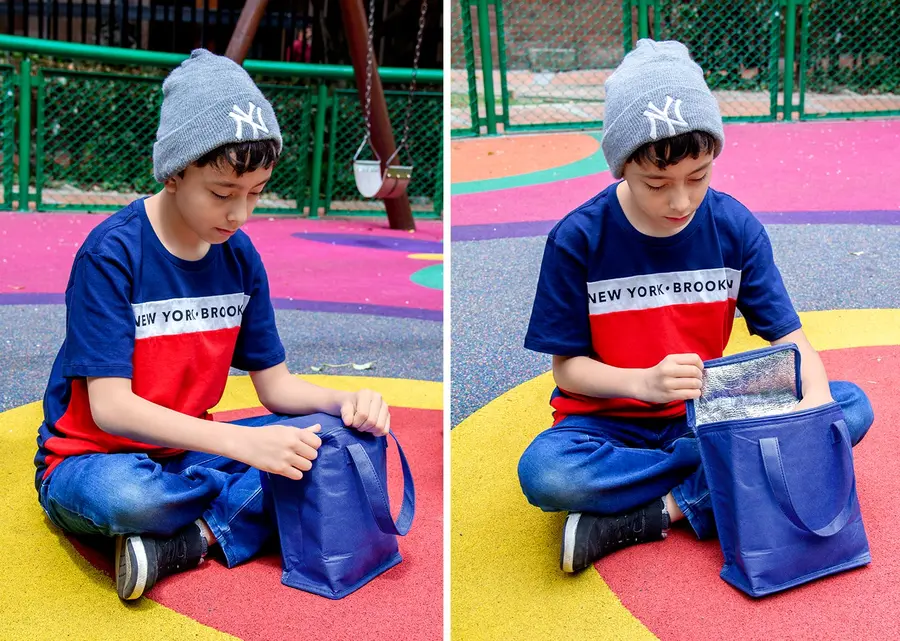 Lonchera térmica con cremallera, revestimiento interior en aluminio para conservar la temperatura, prácticas agarraderas.