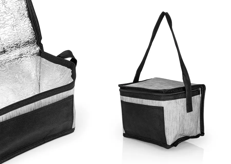 Nevera térmica con cierre de cremallera; revestimiento interior en aluminio para conservar la temperatura, correa sencilla para cargar. bolsillo frontal exterior.