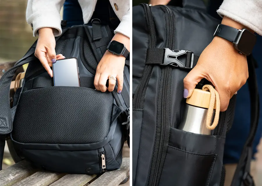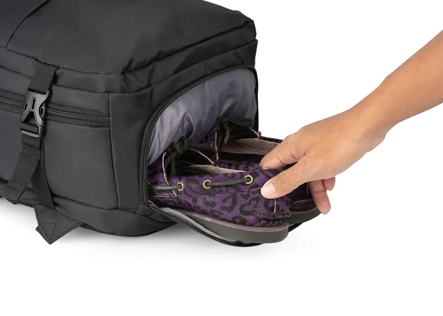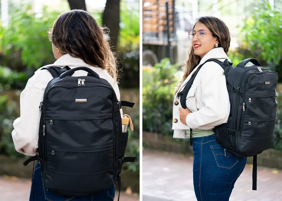 La maleta ideal para viajes en avión. Sus medidas (alto x ancho x profundidad) son aptas para la mayoría de vuelos, como equipaje de mano. Su bolsillo principal, de gran tamaño, se puede abrir hasta 180 grados lo que permite empacar fácilmente. Además, su diseño es multifuncional; incluye un compartimento especial para zapatos y un bolsillo frontal impermeable que se puede utilizar para artículos húmedos. Dotada con un puerto de carga USB que se puede conectar a un multicargador, así como varios bolsillos adicionales de diferentes tamaños y para distintos propósitos.