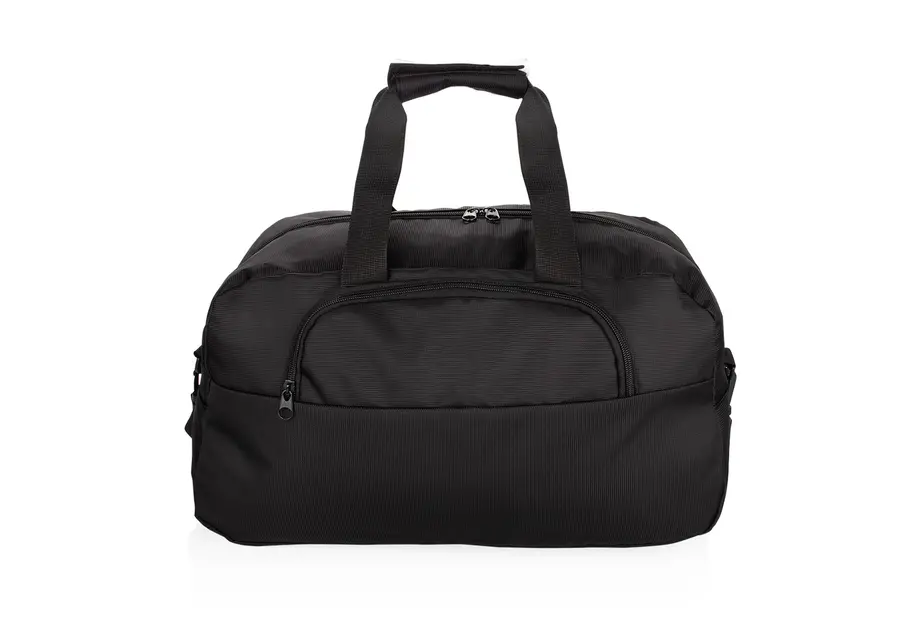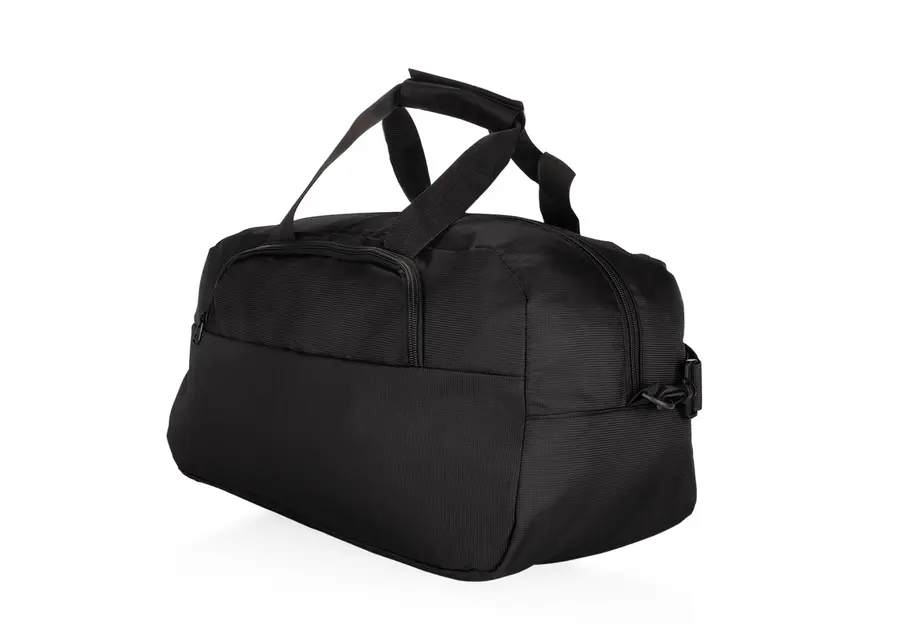 Bolso tipo duffle fabricado en nylon texturizado, con cremallera frontal, correas de mano que se pueden unir para mayor comodidad, y correas de hombro ajustables y removibles que se adaptan a diferentes estilos de uso. Su diseño funcional y resistente lo hace ideal para llevar tus pertenencias de forma práctica y segura. Volumen aproximado: 16 litros.