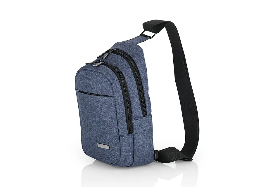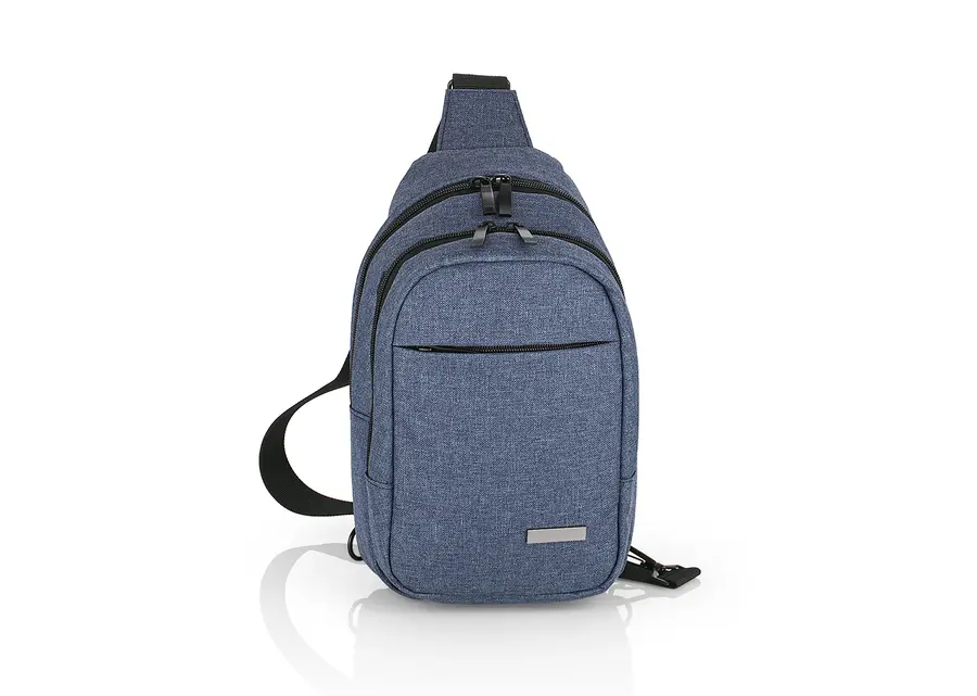 Manos libres con cargadera ajustable, bolsillo frontal, medio y principal con cremallera, placa metálica para marca en láser, compartimentos internos para organizar mejor.
