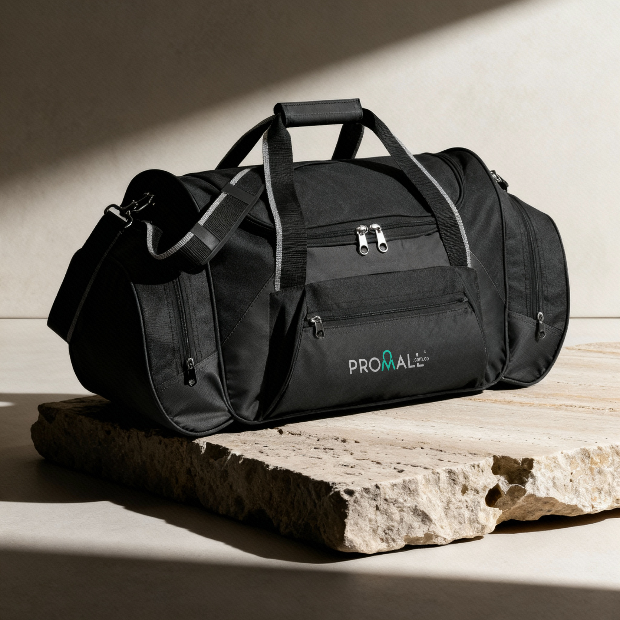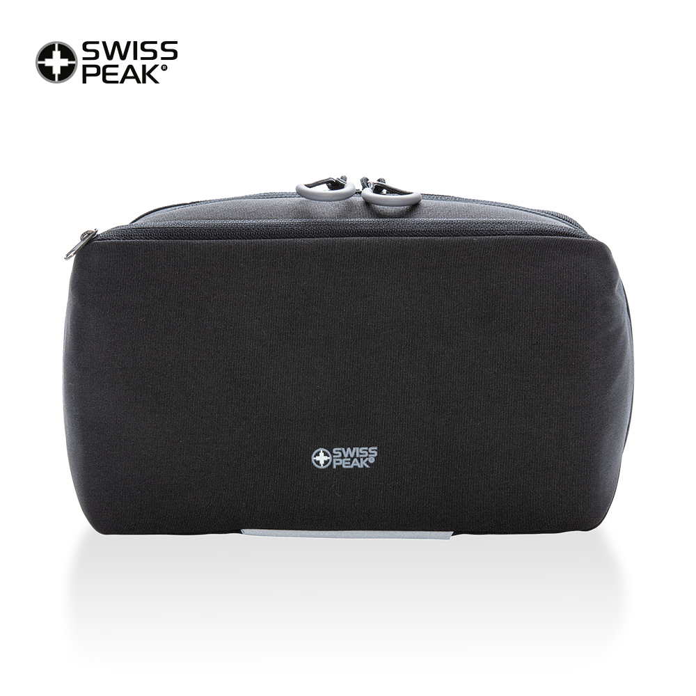 Bolso compacto manos libres en poliéster, con bolsillo exterior con cremallera y bolsillos laterales en malla.