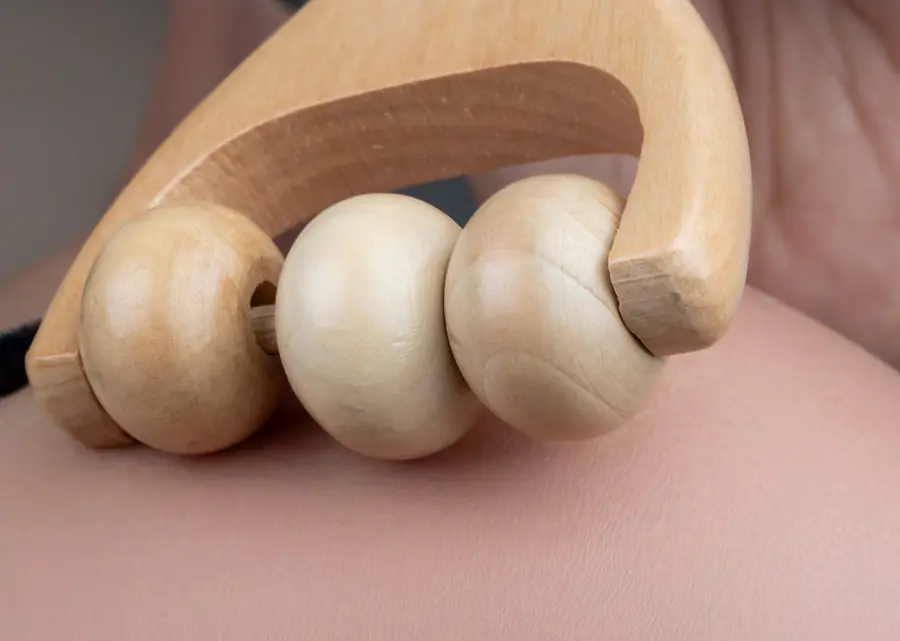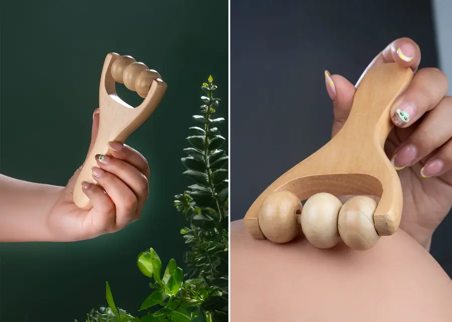 Masajeador de madera con rodillos Diseñado para brindar una experiencia relajante, este masajeador de madera cuenta con rodillos suaves que estimulan la circulación y alivian la tensión muscular.