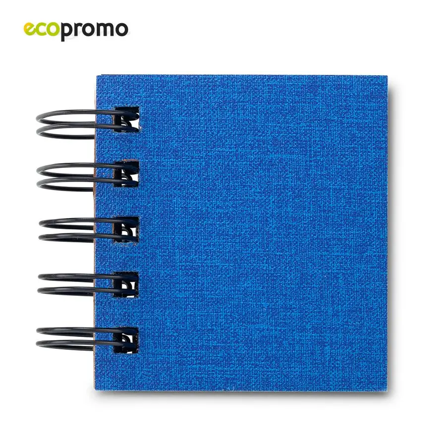 Set de portastickies de cartón con cubierta de tela, argollado doble O. 3 tacos de hojas autoadhesivas x 25 und. 5 stickies de colores.