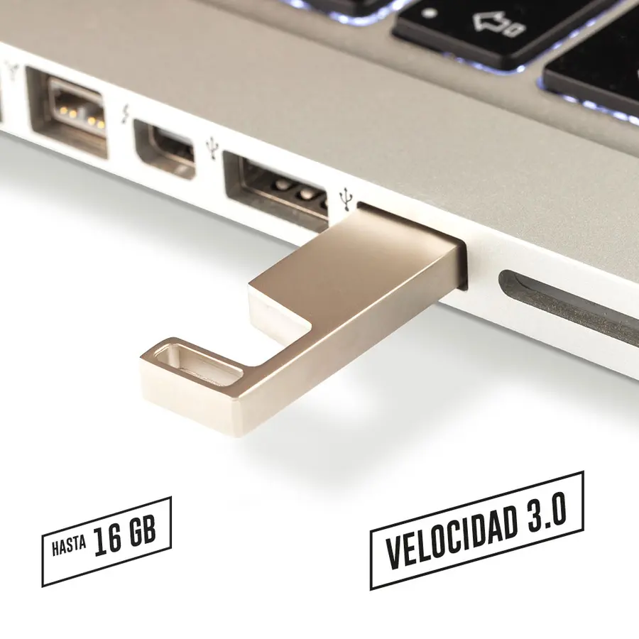 Memoria USB metálica con portacelular, velocidad 3.0.