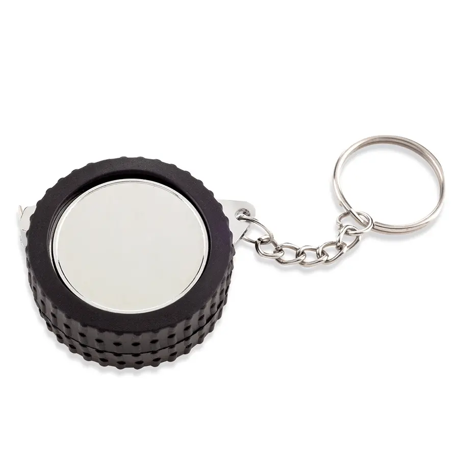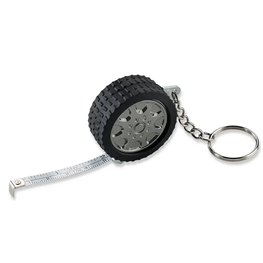 Cinta métrica de 1 metro y llavero plástico en forma de neumático.
