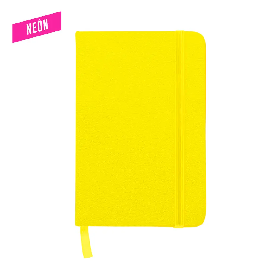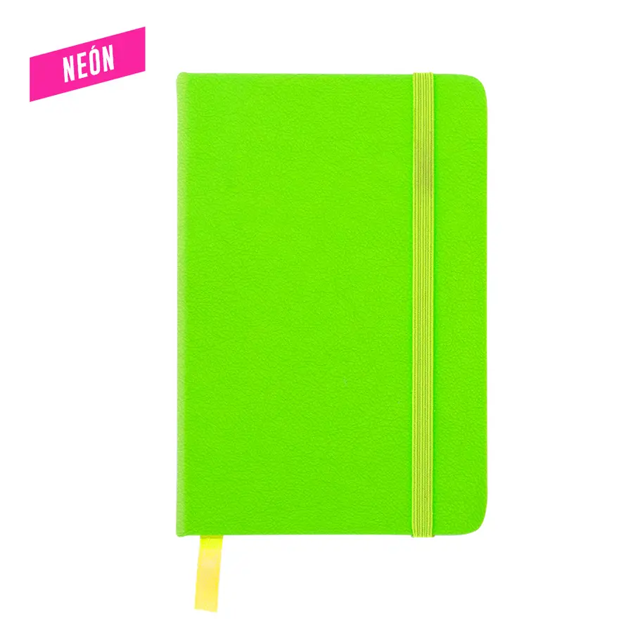 Mini libreta en poliuretano en colores neón. 80 hojas.