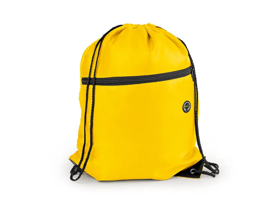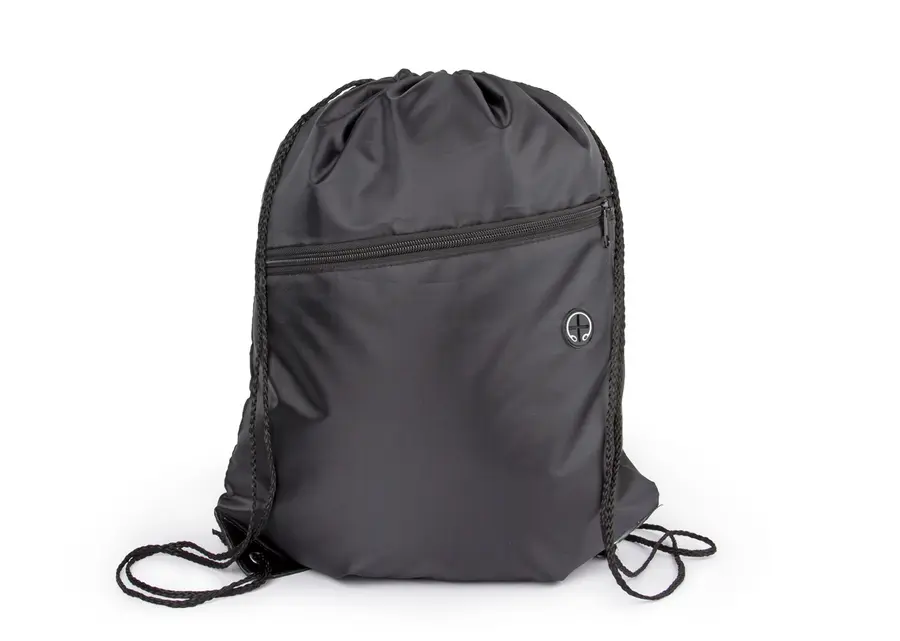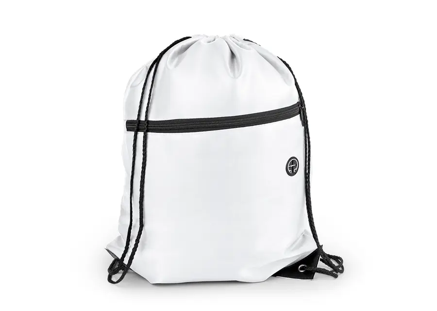 Bolsa con cordón para ajustar y cargar fácilmente. Bolsillo delantero con cremallera y orificio para audífonos. Con refuerzo en las esquinas.