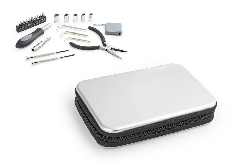 En poliéster, con accesorios en gamuza sintética. Con un bolsillo lateral, malla portabotella y dos bolsillos frontales. Espaldar acolchado.