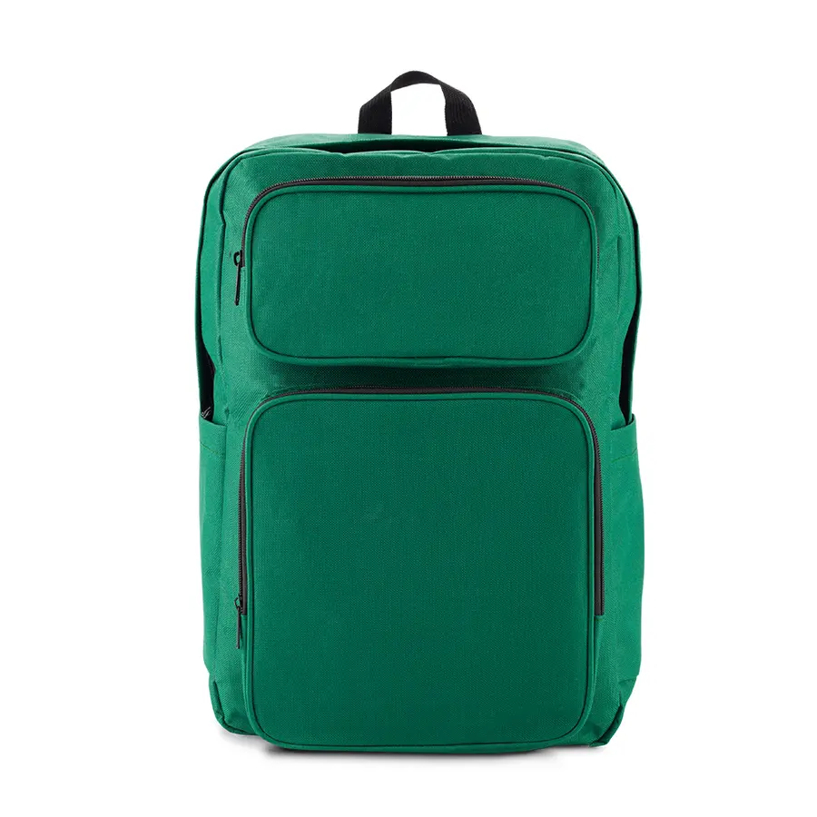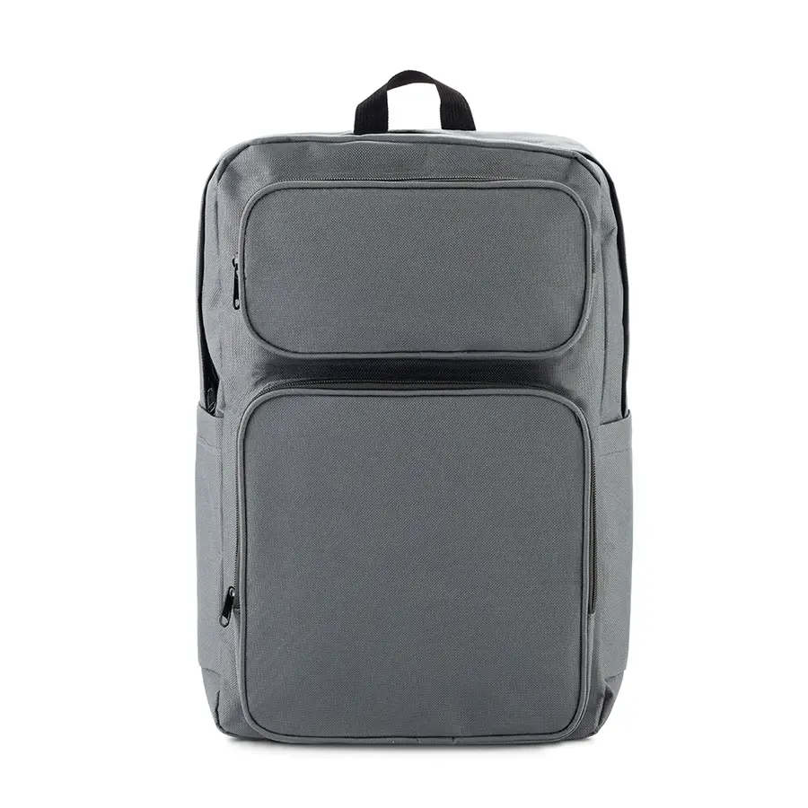 Morral backpack en poliéster. Apto para portátil de hasta 15. Tres bolsillos externos con cremallera. Dos bolsillos laterales sin cremallera.