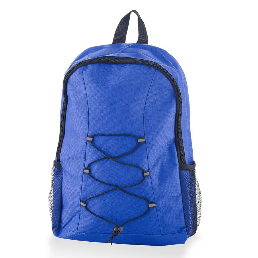 Morral en poliéster 600D, dos bolsillos externos de malla, cordón exterior ajustable.