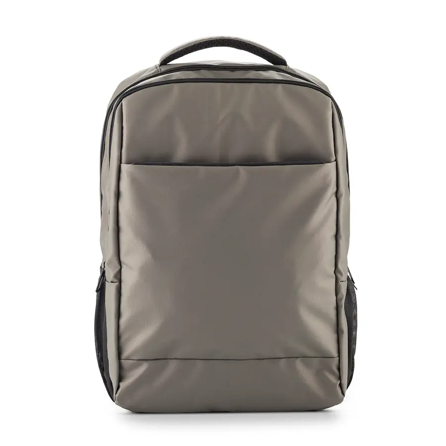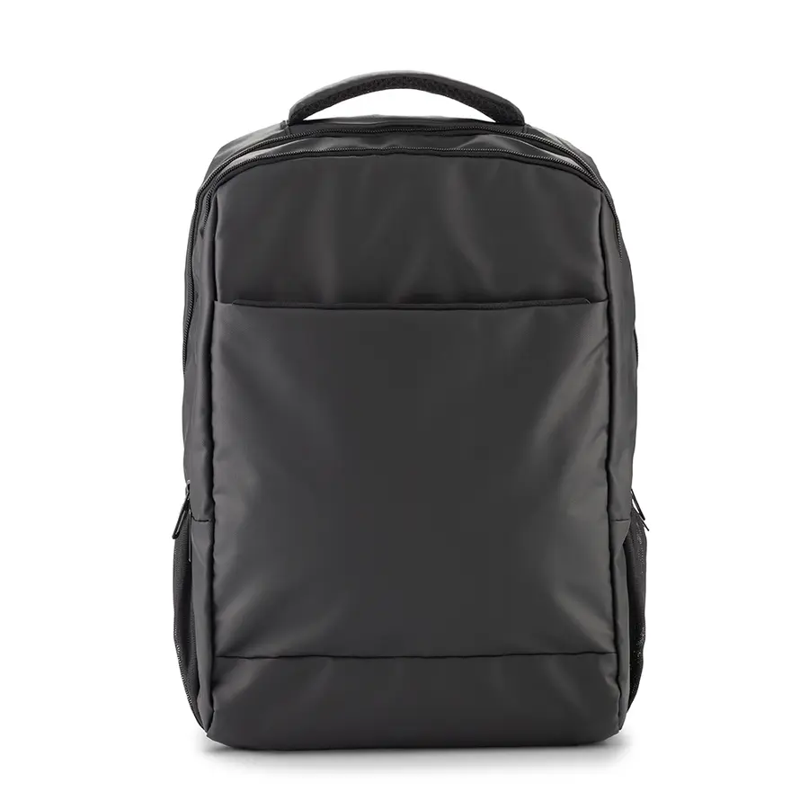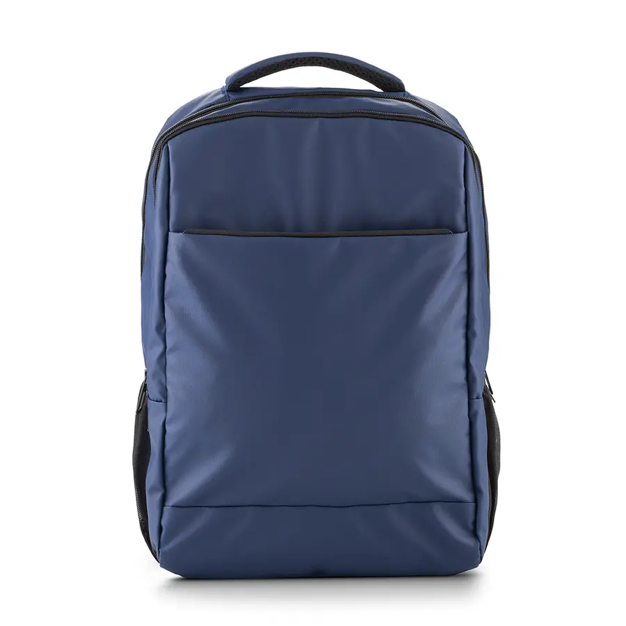 Morral backpack en poliéster. Apto para portátil de hasta 15″. Tres bolsillos externos con cremallera. Dos bolsillos laterales en malla. Banda posterior para enganchar en trolley.