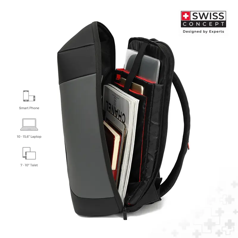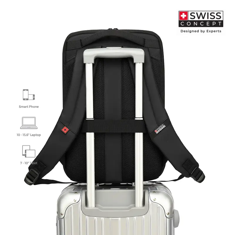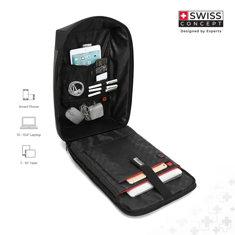 Compartimiento acolchado para laptop de 15.6”.Compartimiento interno para Tablet.Amplio y cómodo espacio interno para documentos, libros, cámara, y accesorios.Asas acolchadas y ajustables para mayor comodidad.Doble manija de alta resistencia en parte superior.3 bolsillos frontales con cremallera de fácil acceso.Material: Poliéster.Incluye placa metálica adicional para marca.29 cm x 15 cm x 43 cm Láser en placa metálica