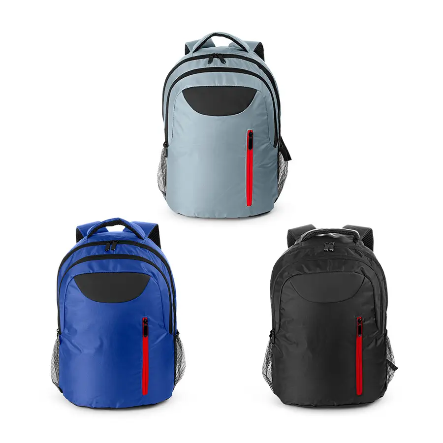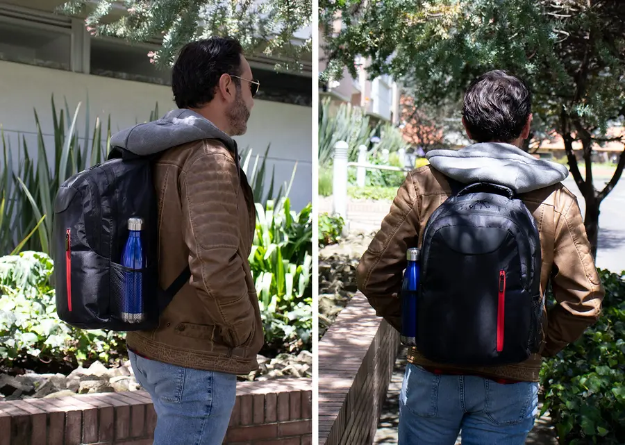 Morral con cargaderas ajustables y acolchadas, bolsillo principal con compartimiento apropiado para portátil de 14″. Bolsillo medio con compartimiento para documentos, celular y bolígrafos, bolsillo frontal con cremallera lateral y bolsillos laterales en malla.