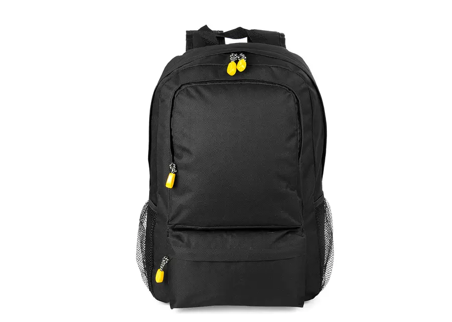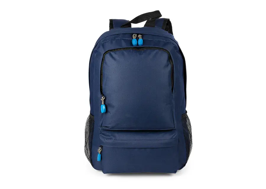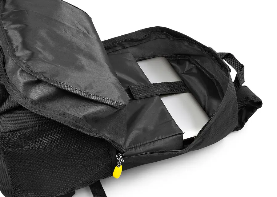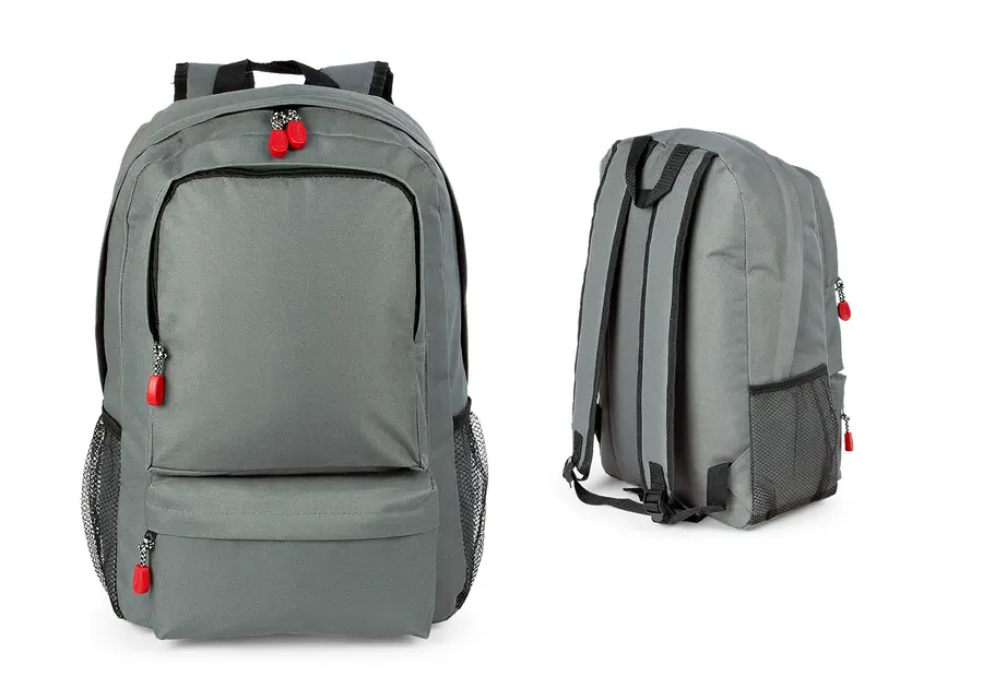 Morral con cargaderas ajustables, Bolsillos laterales en malla, bolsillos frontales y principal con cierre en cremallera, compartimiento para el portátil de 14″.
