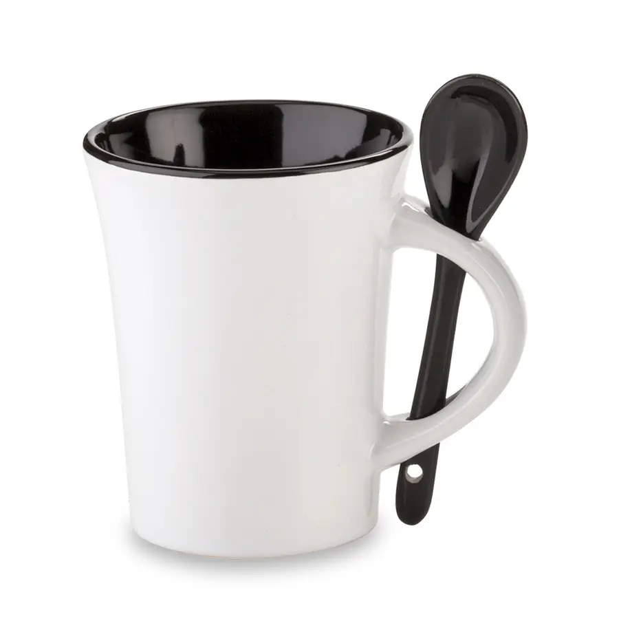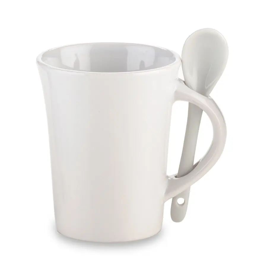 Mug en cerámica con cuchara. Apto para microondas y lavavajillas.