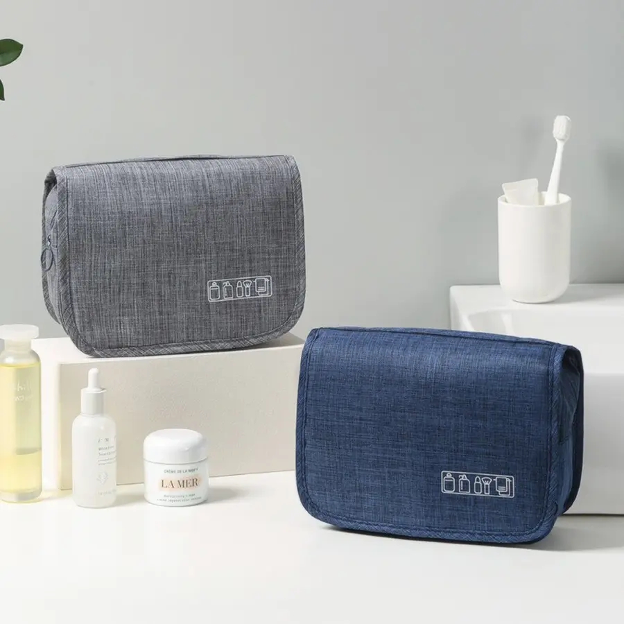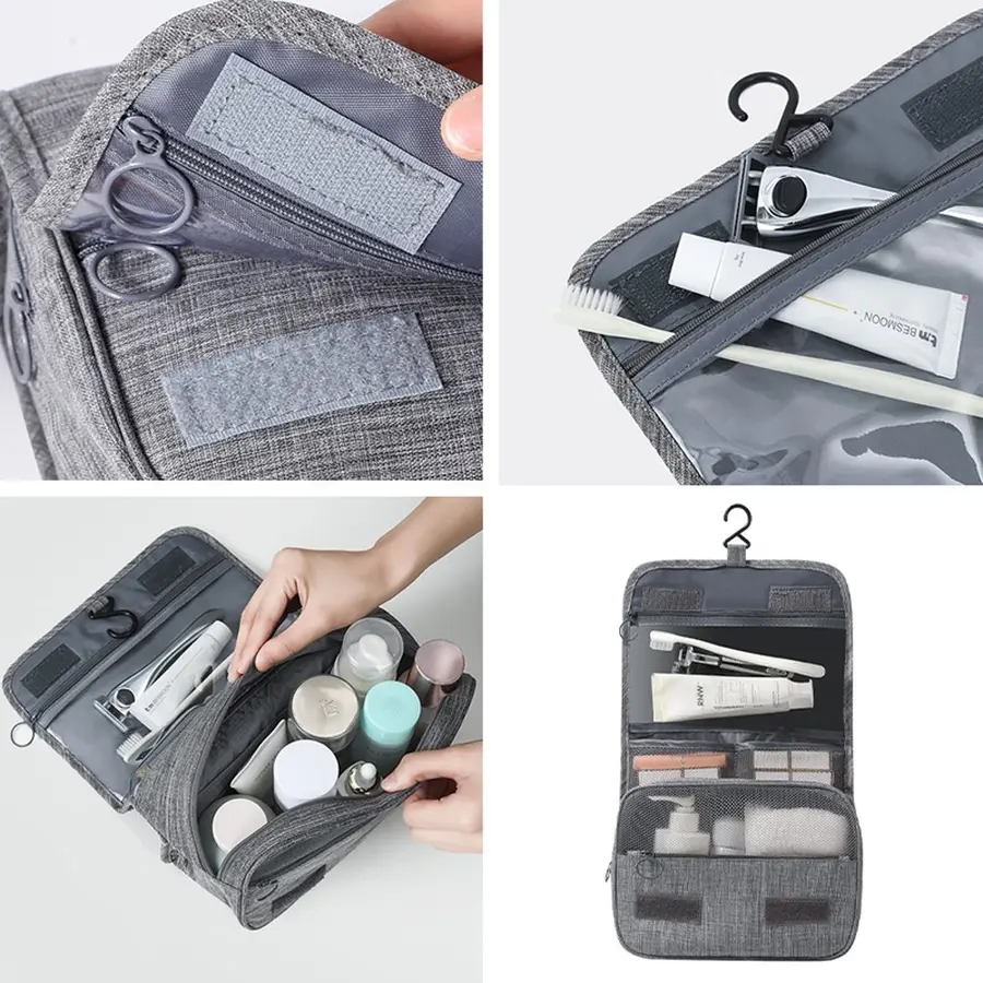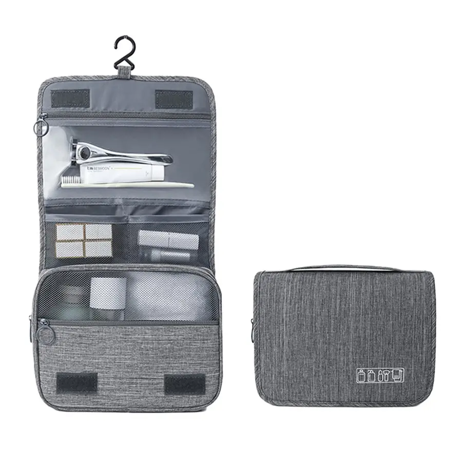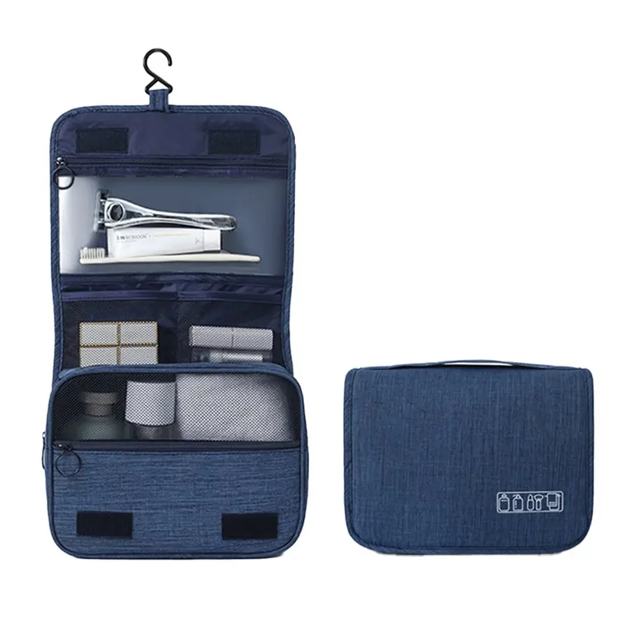 Neceser fabricado en poliéster 300D de alta densidad con 2 compartimentos de gran capacidad y cierre con cremallera.