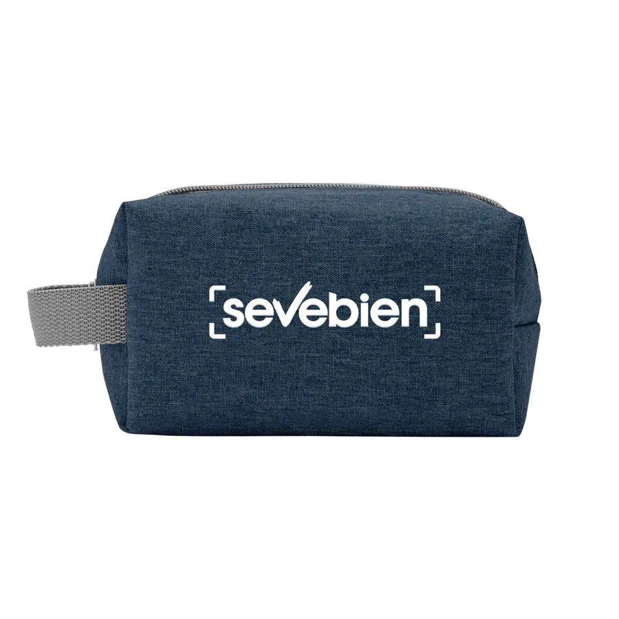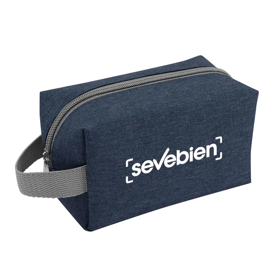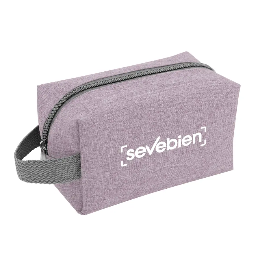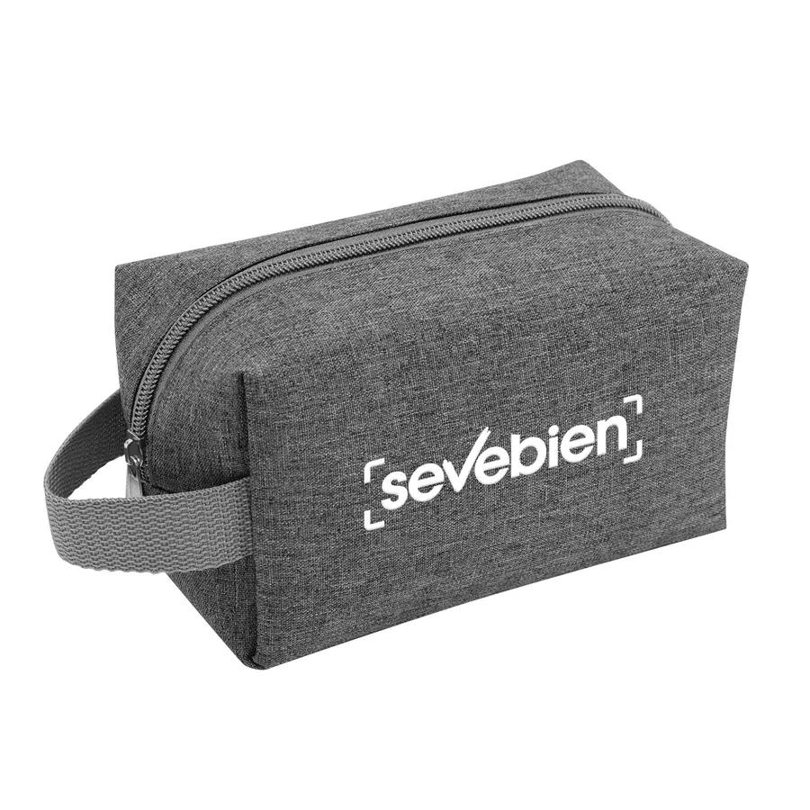 Poliéster 300D. Necessaire con amplio compartimento. Interior forrado en Poliéster 210D. Cierre con tirador metálico y asa lateral en tela de color gris.