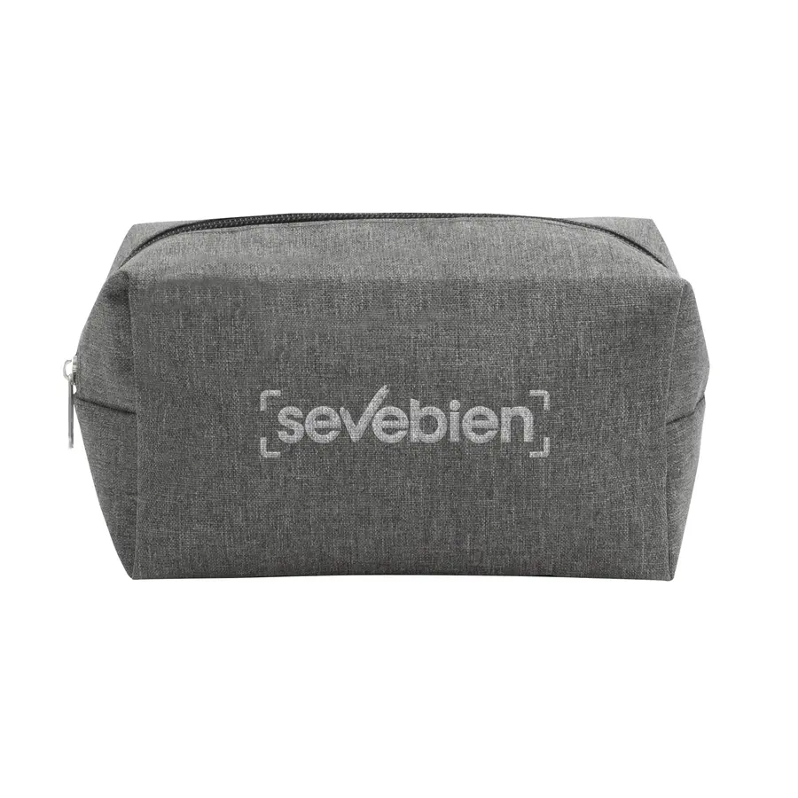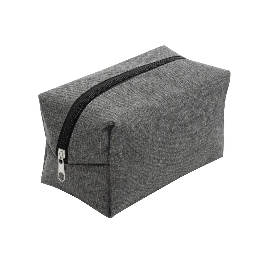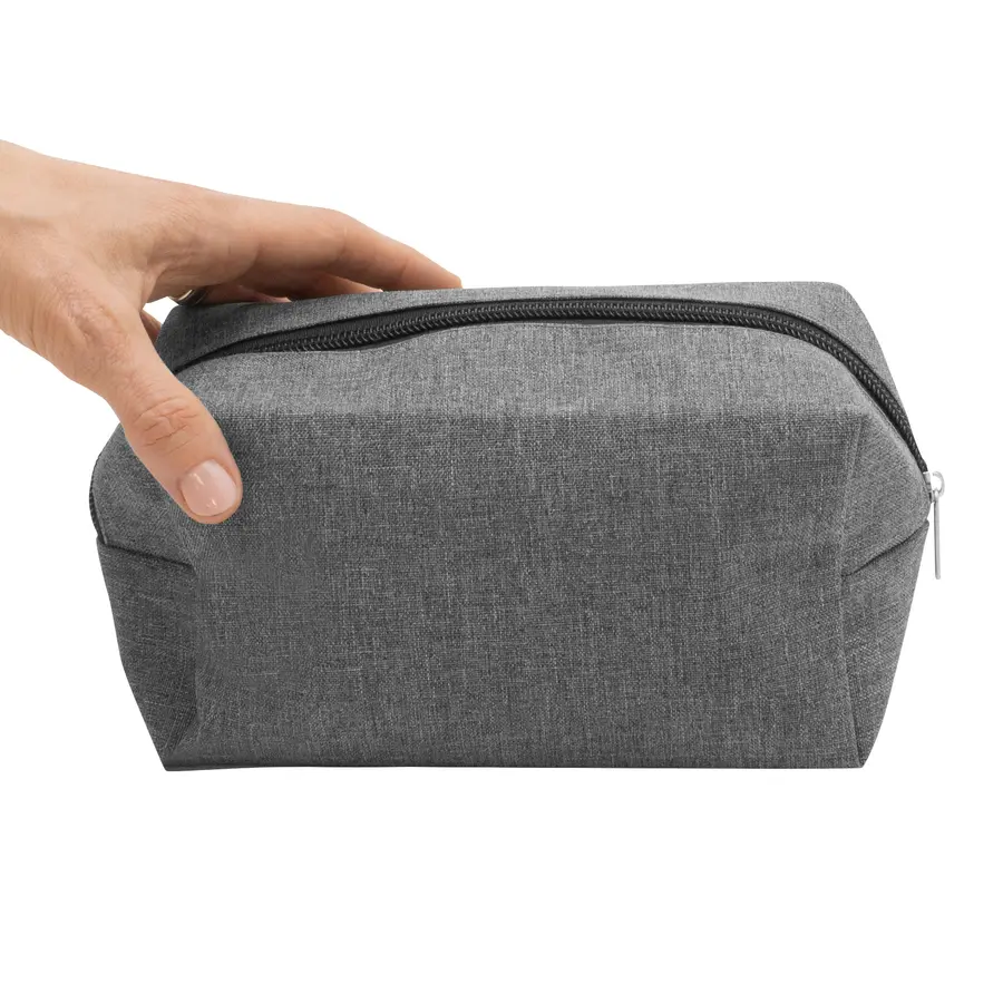 9,5 x 10 x 17,5 cm. Poliéster. Necessaire con amplio compartimento. Interior de color negro y cierre del mismo color.